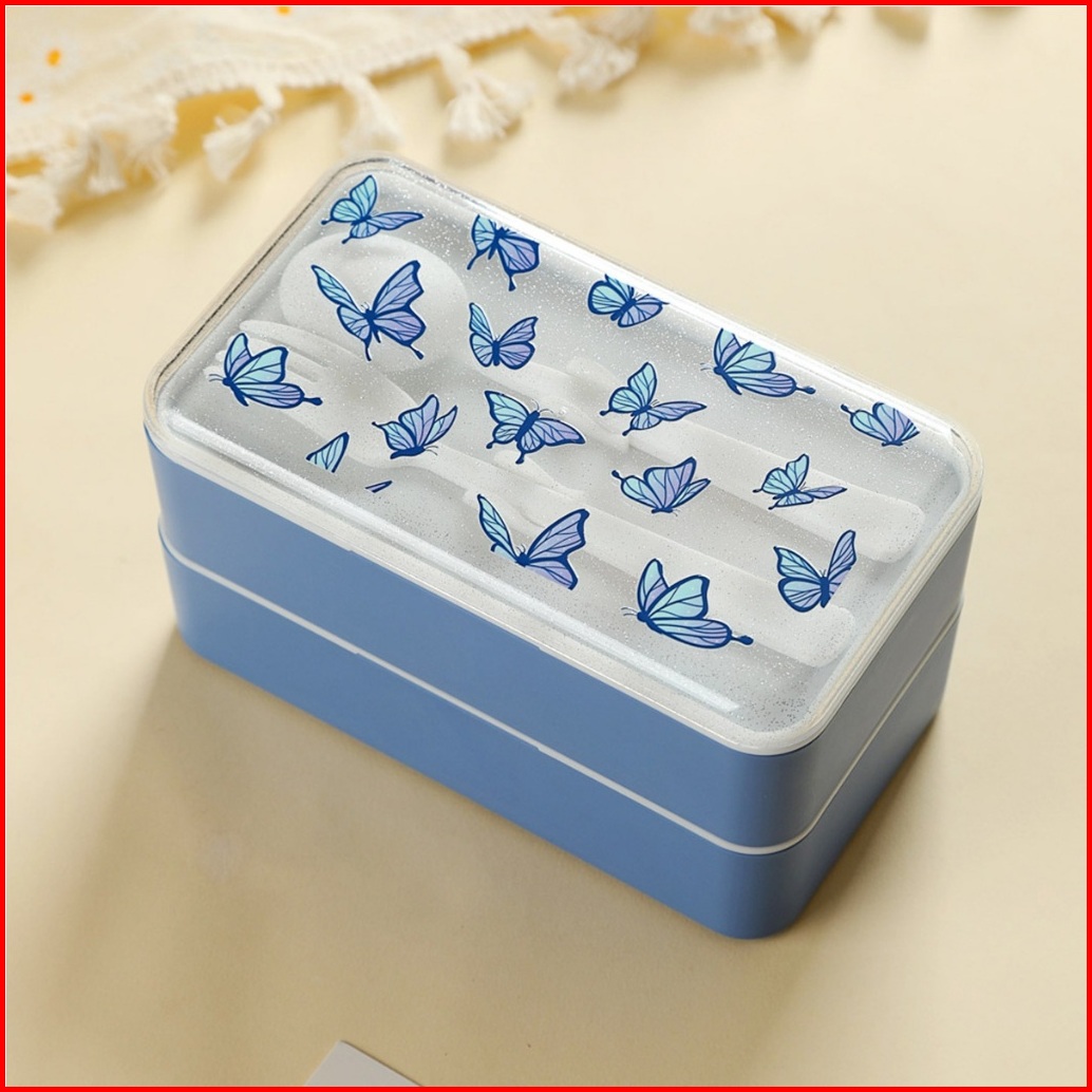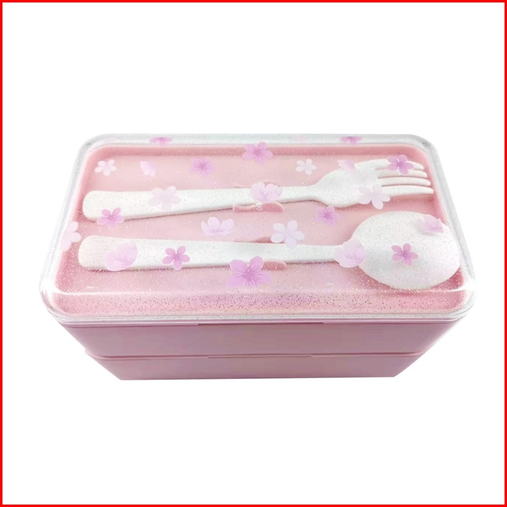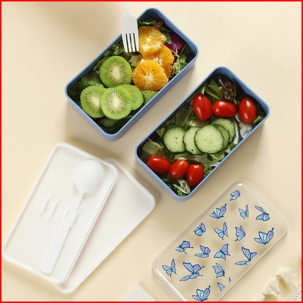 Miniso Lunch Box Set Kotak Makan 2 Lapisan 1000ml Kotak Bekal Free Sendok Dan Garpu Bento Box 1l