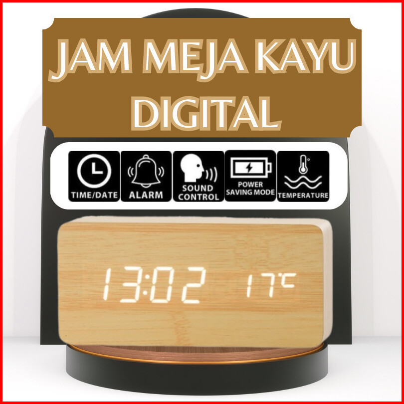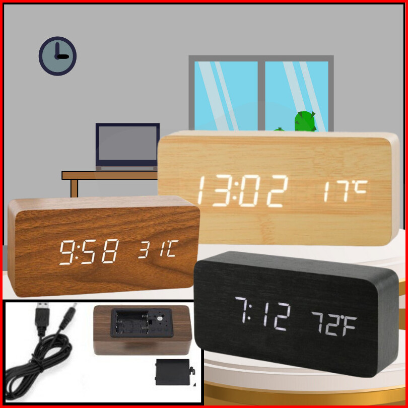 Jam Kayu Digital Led Digital Wood Smart Alarm Clock Jam Weker Alarm Led Clock Waker Suhu Jam Meja