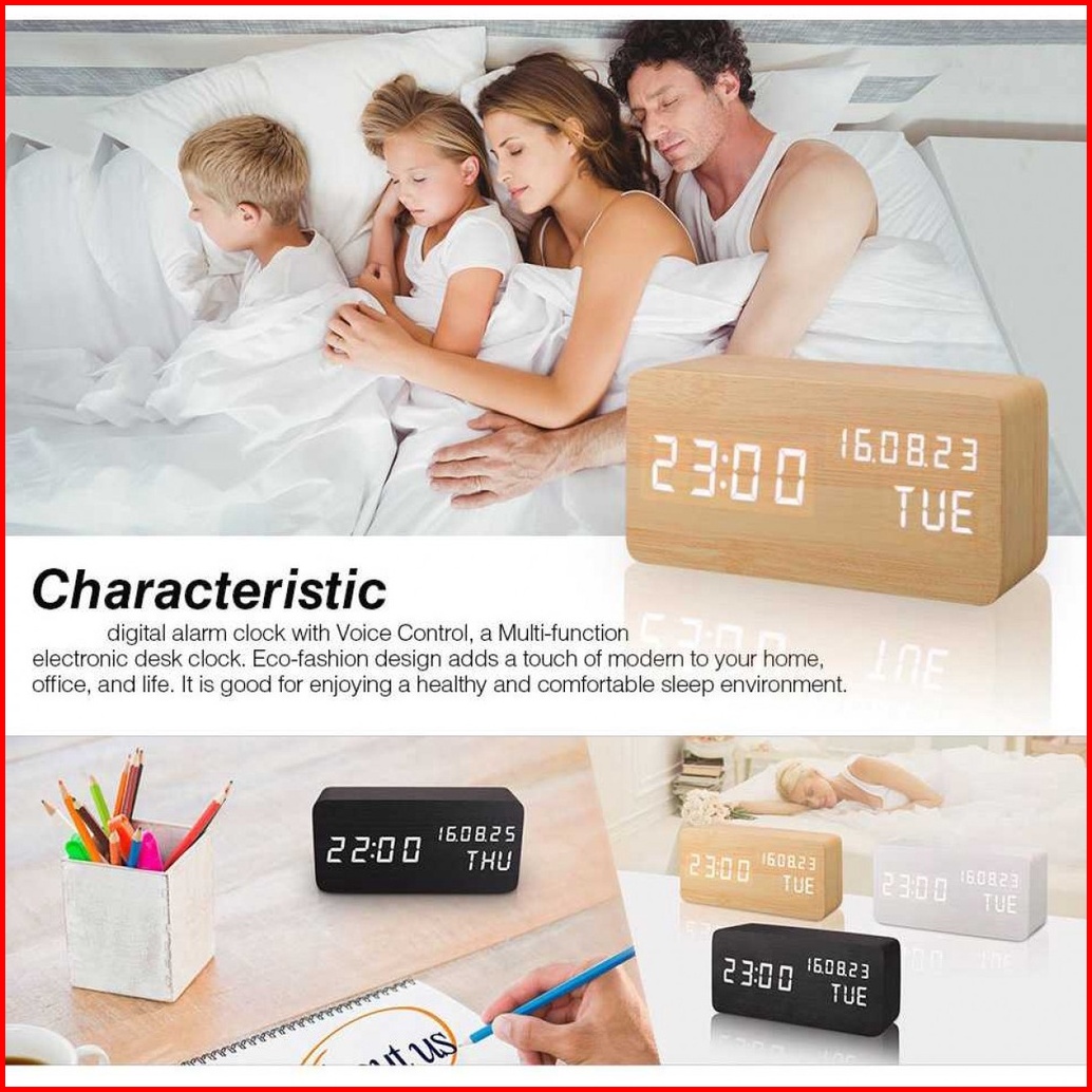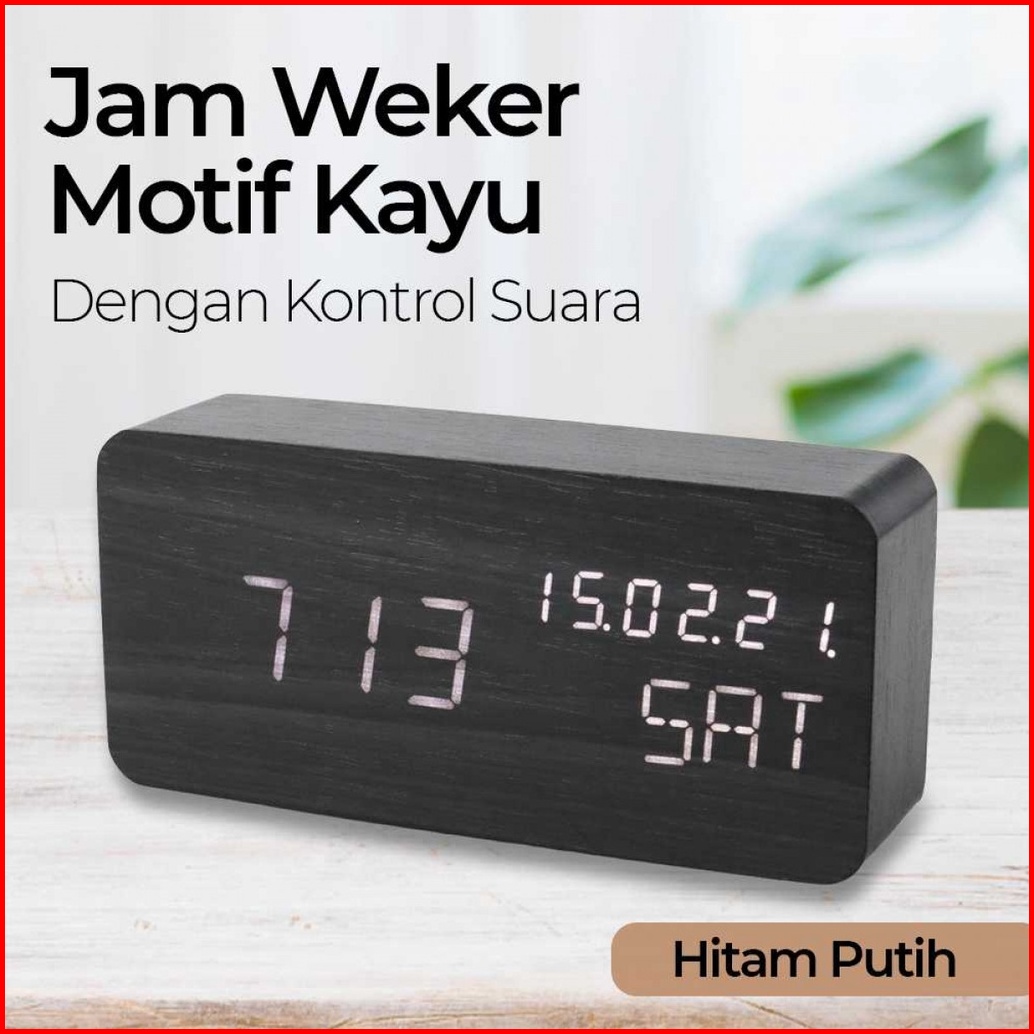 Jam Weker Alarm Motif Kayu Digital Voice Control - Tx602
