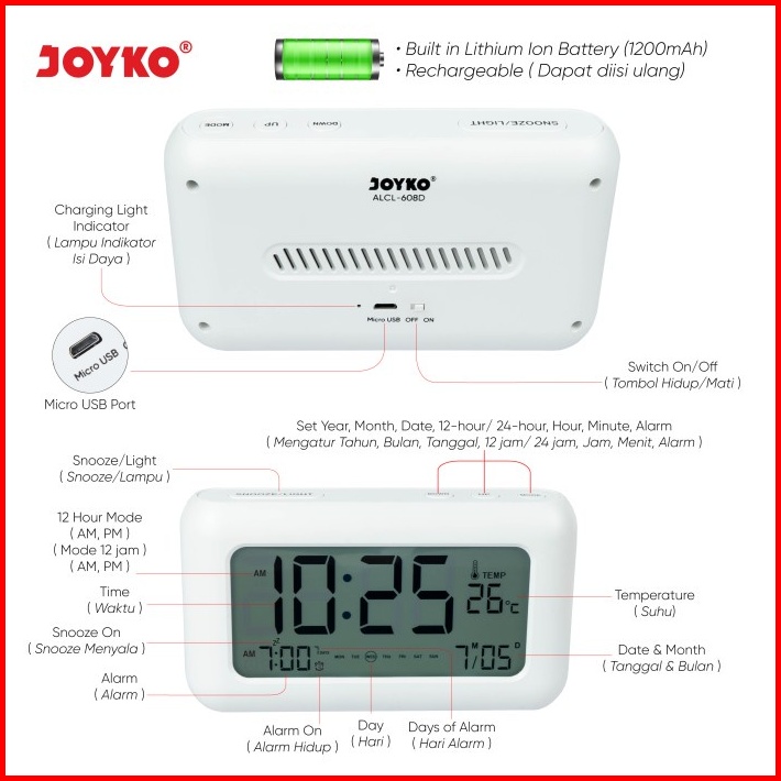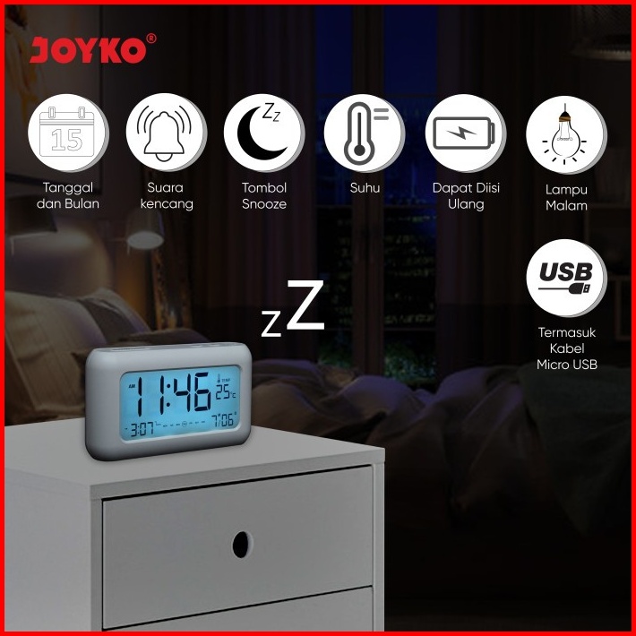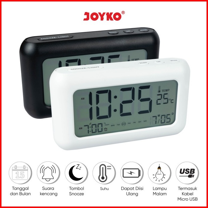 Jam Beker Dering Rechargeable Digital Alarm Clock Joyko Alcl-608d