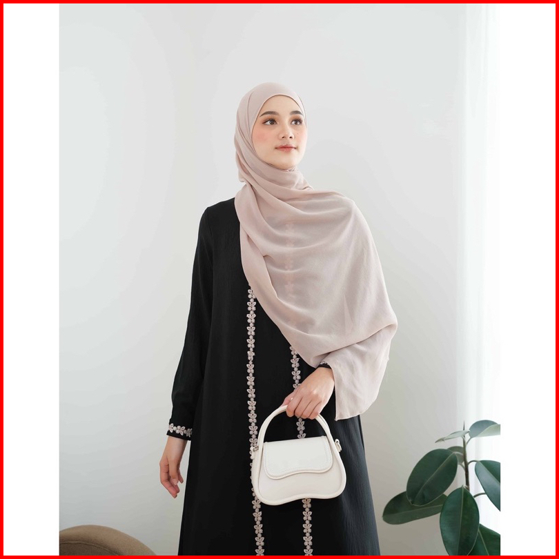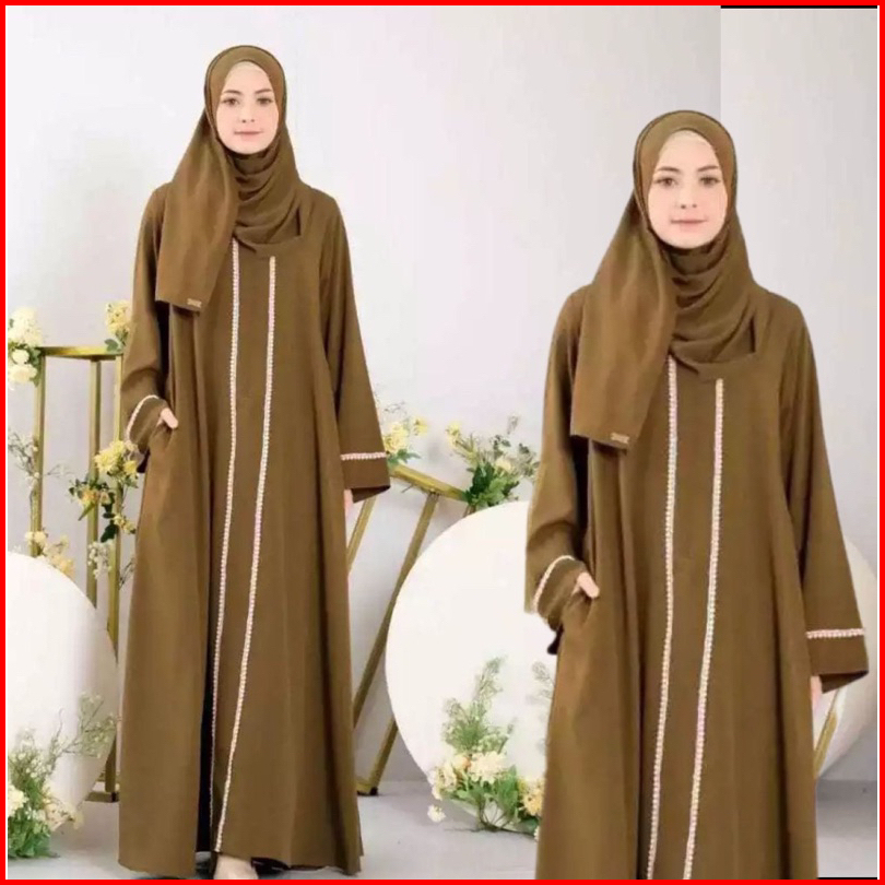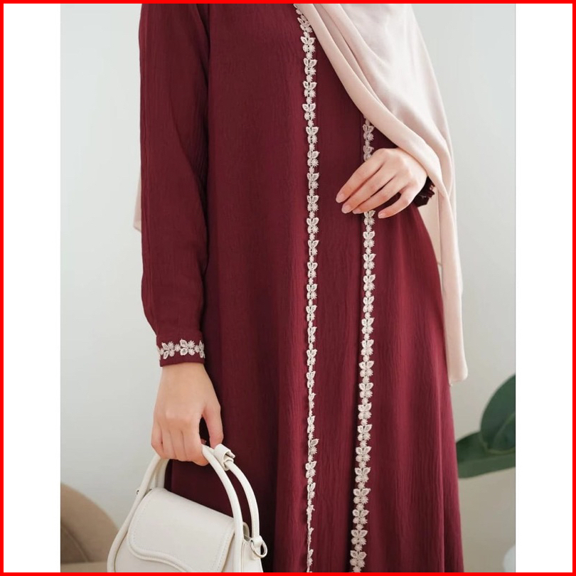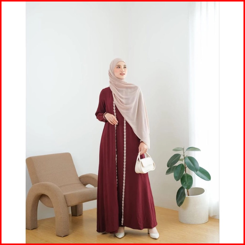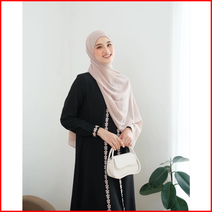 Gamis Hitam Polos Aplikasi Renda Abaya Turkey Baju Syar I Umroh Simpel
