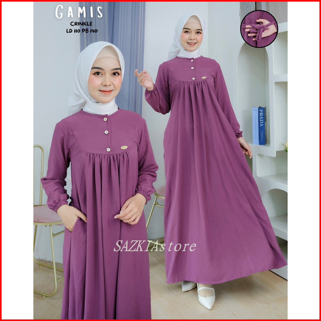 Baju Gamis Wanita Terbaru Gamis Lebaran Bahan Crinkle Airflow Adem Dan Lembut Bisa Busui Simpel Elegan