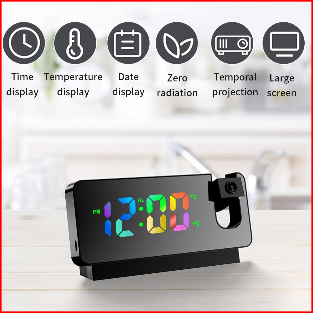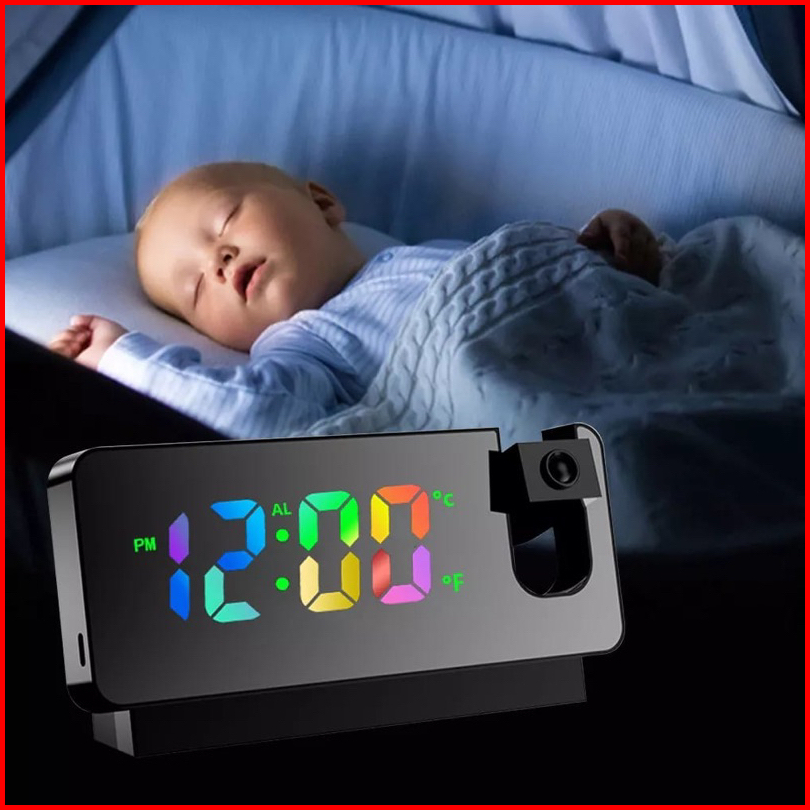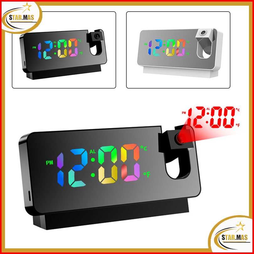 Jam Alarm Digital Dengan Layar Led 7.8 Snooze Suhu Kalender Projector Projection