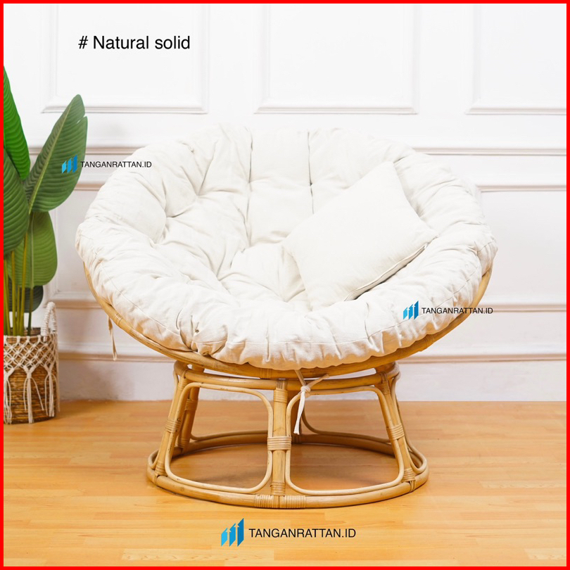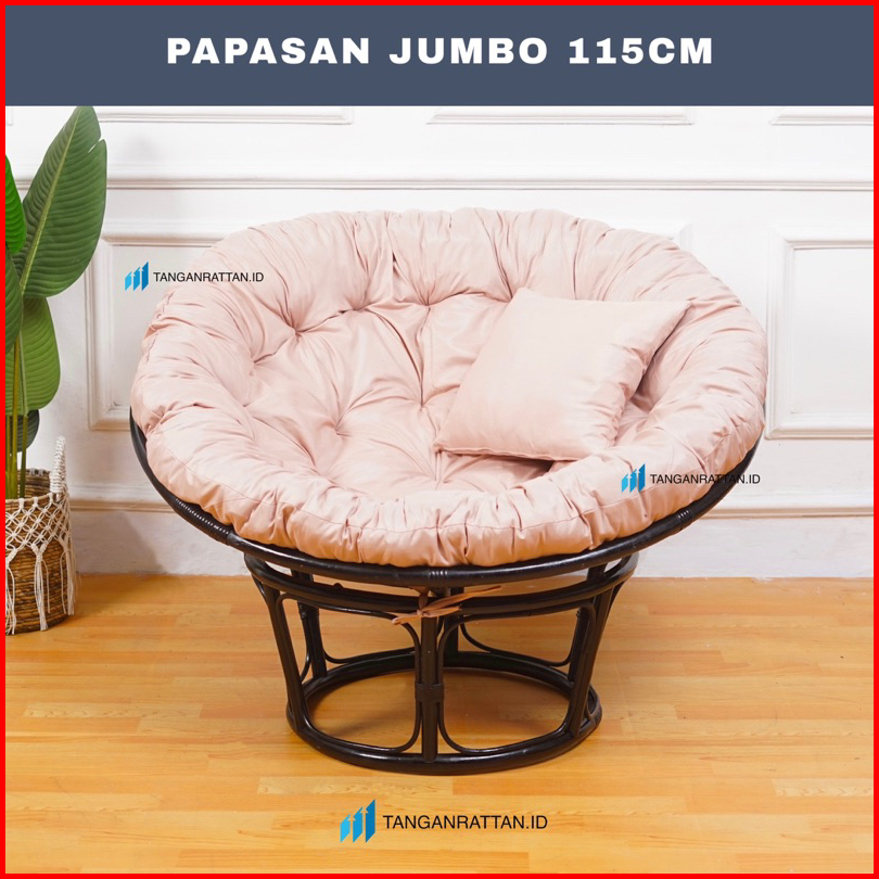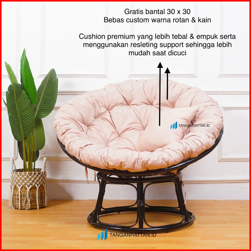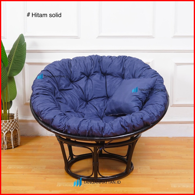 Kursi Santai Papasan Rotan Hitam Solid Dengan Kasur Dan Bantal Kursi Minimalis Parabola Bulat Finishing Solid