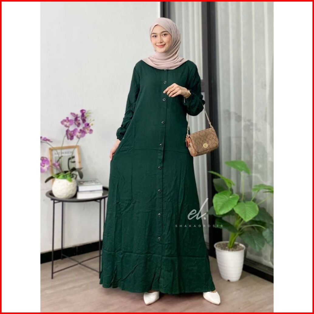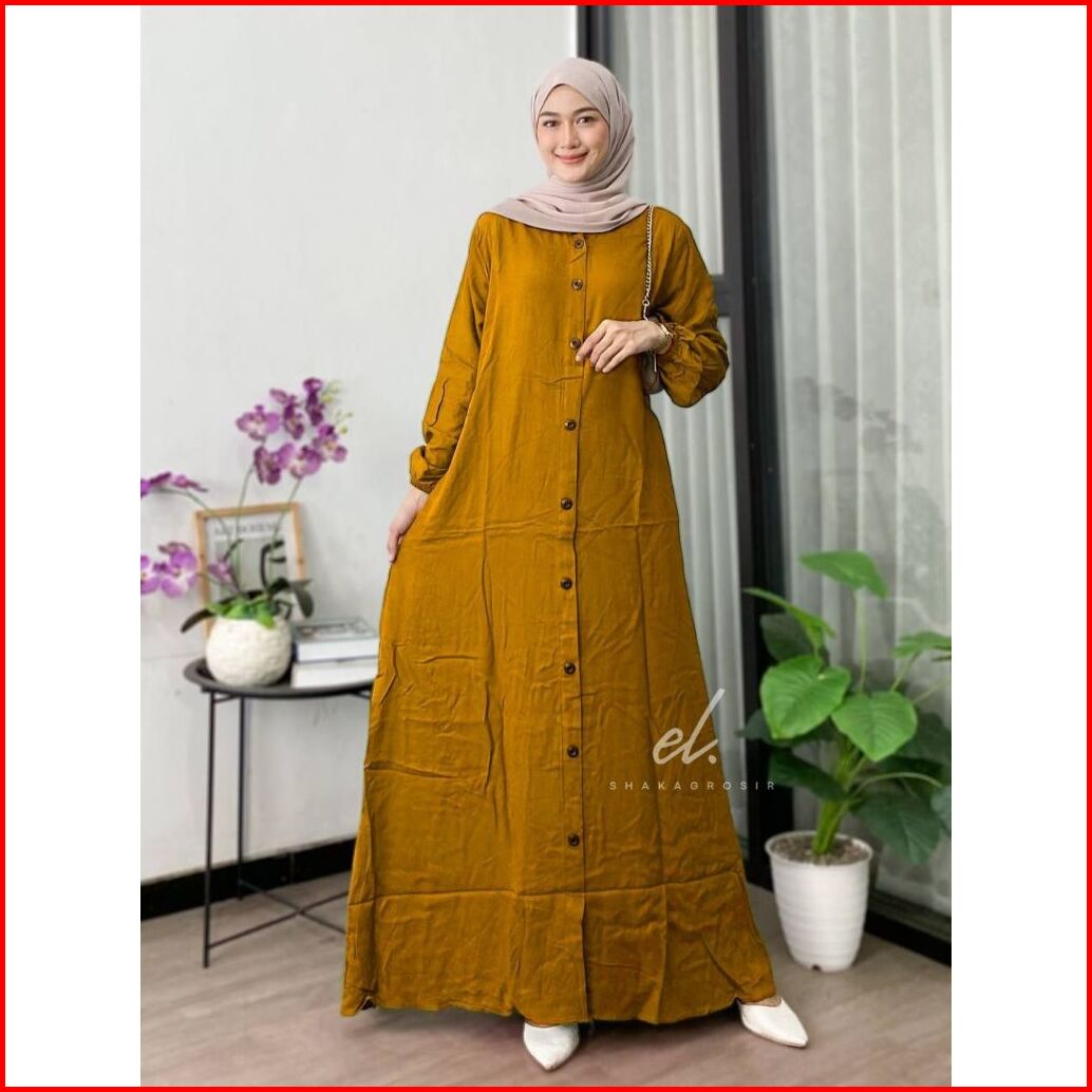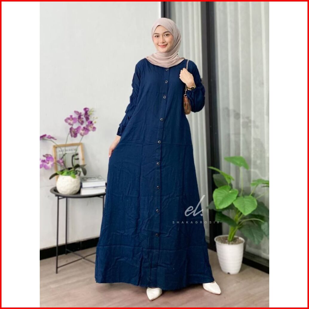 Gamis Twill Premium Busui Friendly Kancing Dress Polos Adem Tebal Full Kancing Size Lengkap S M L Xl Xxl Cocok Untuk Dai