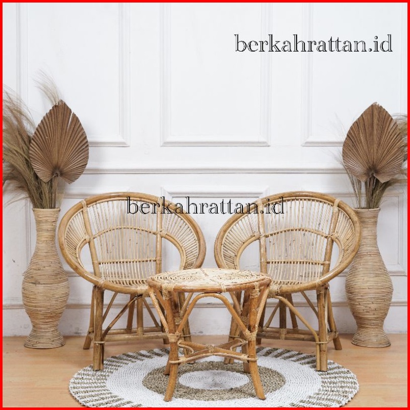 Kursi Teras Rotan Baron Size Jumbo 1 Set Meja Kursi Rotan Alam Sudah Finishing