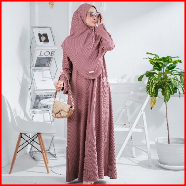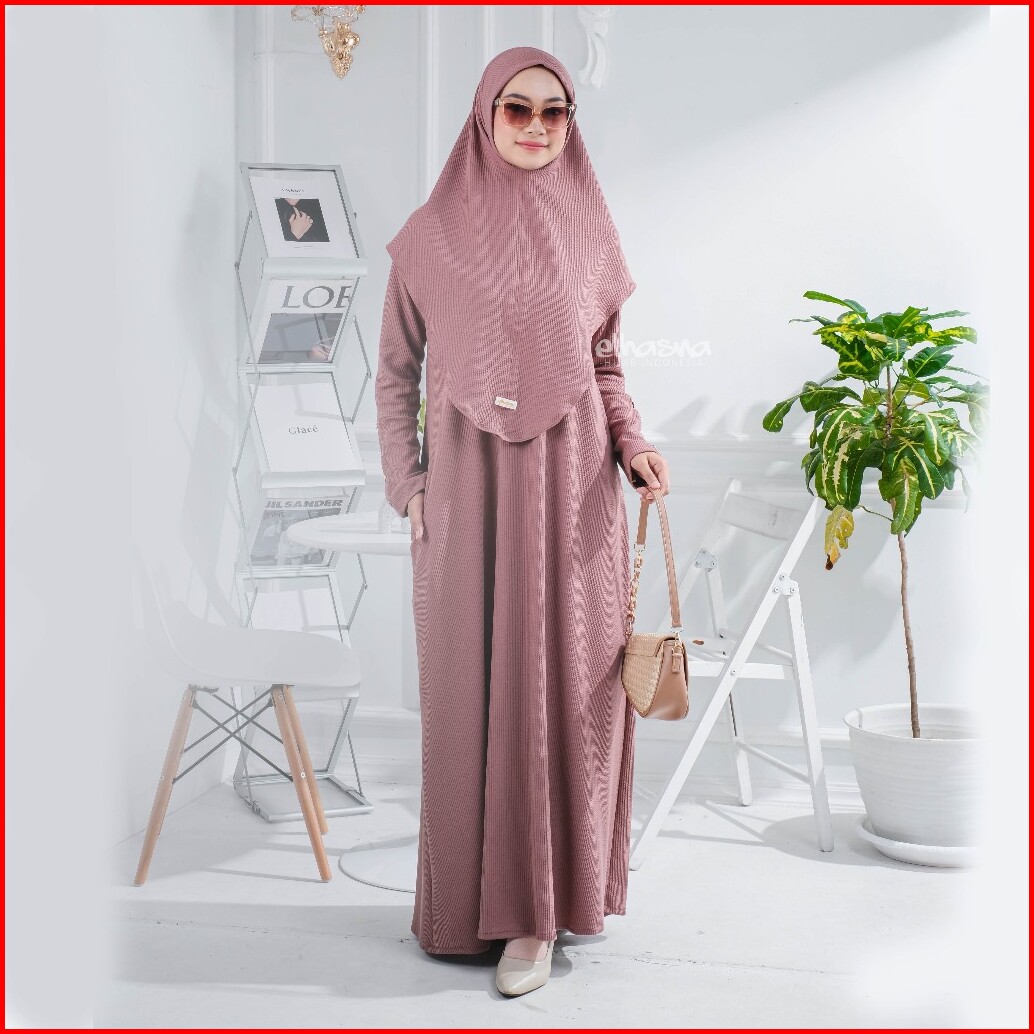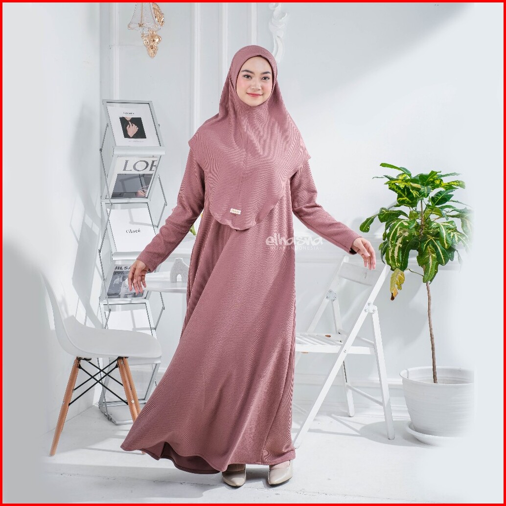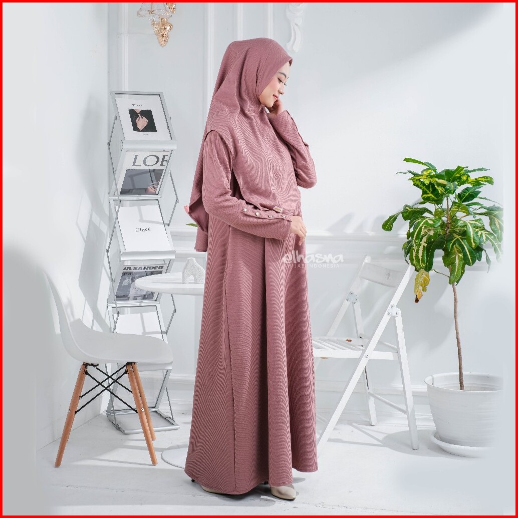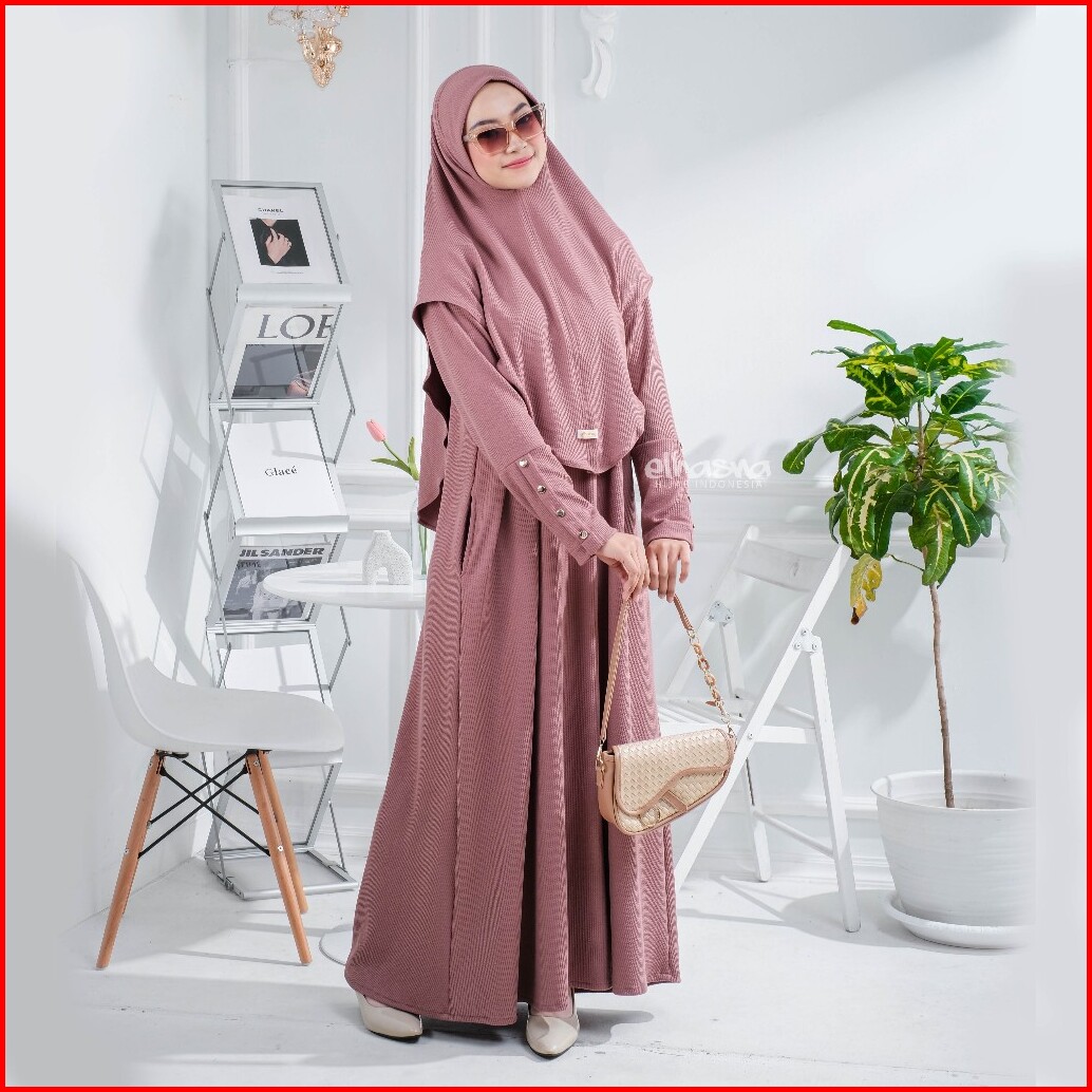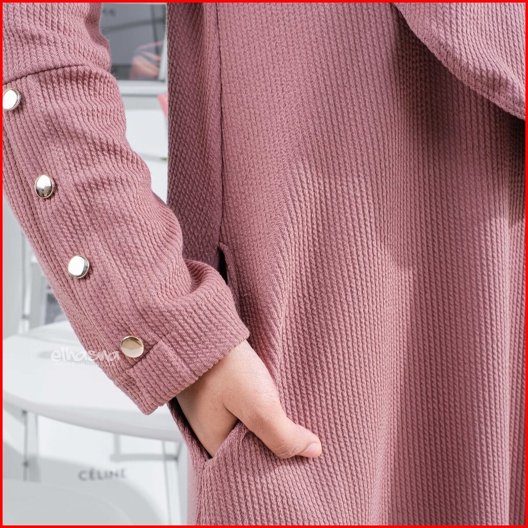 Elhasna Hijab Indonesia Gamis Dress Abaya Resleting Depan Button Knit Premium Jumbo