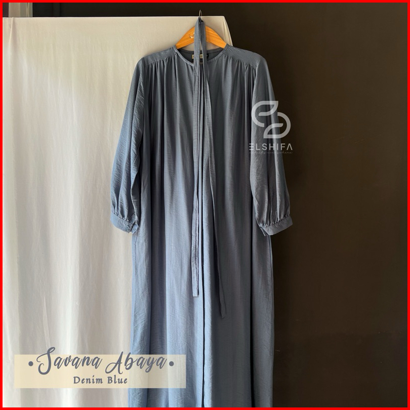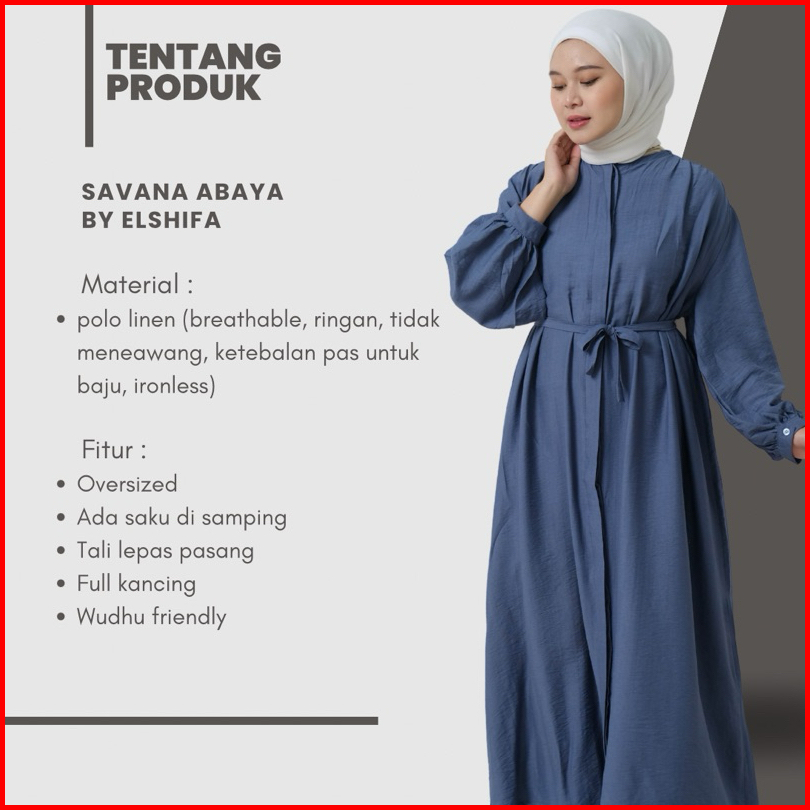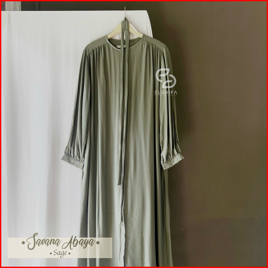 Elshifa - Savana Basic Abaya Oversize Polo Linen Full Kancing Gamis Sekaligus Outer By Elshifa