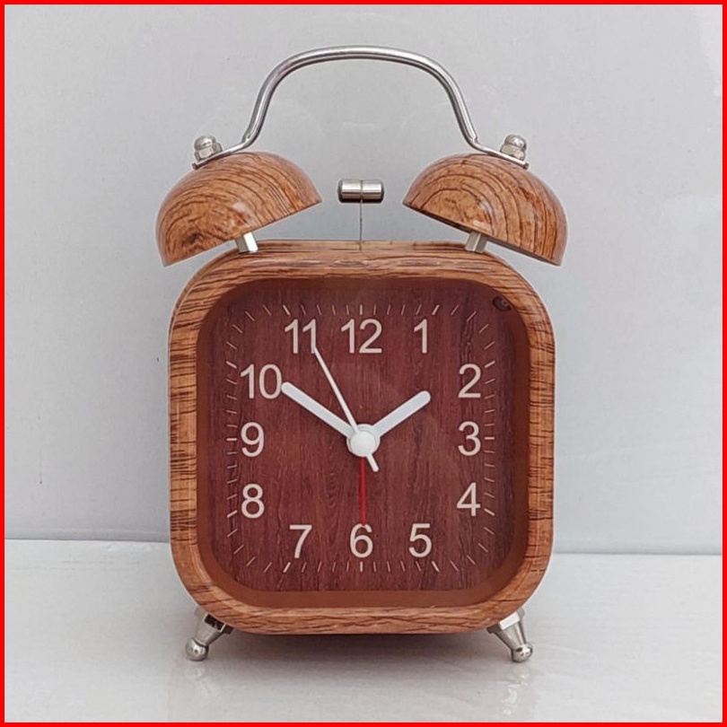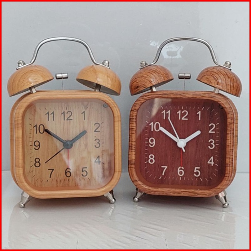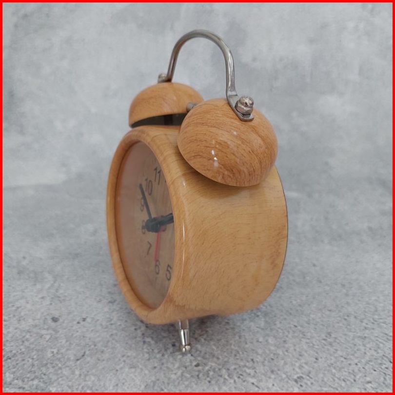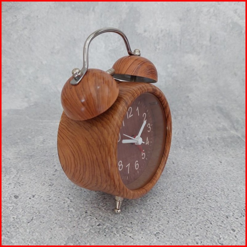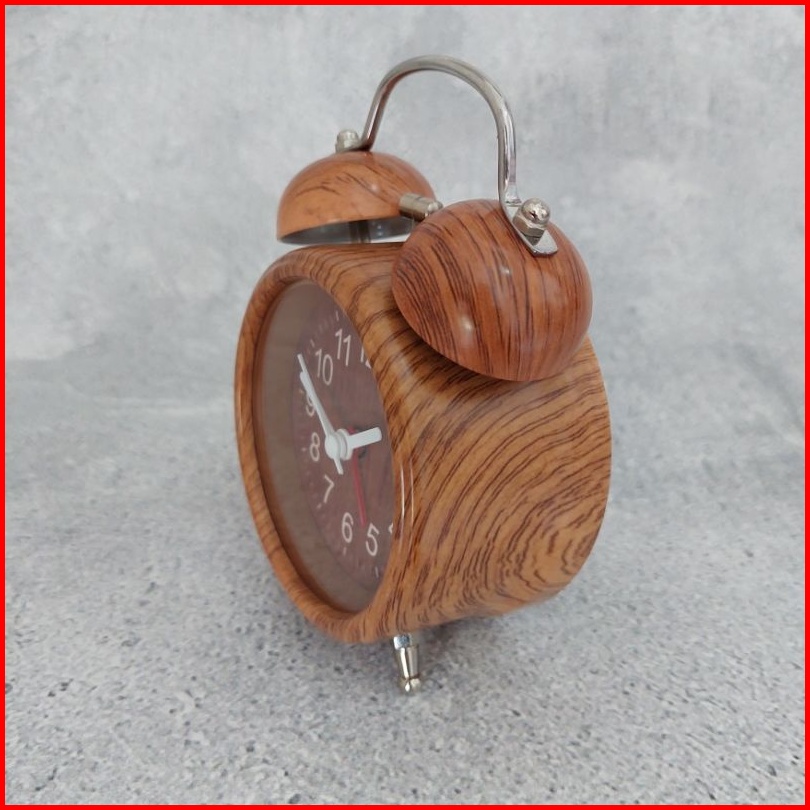 Jam Weker Kring Besi Vintage Klasik Classic Jam Beker Alarm Motif Wood Kayu Clock Unik