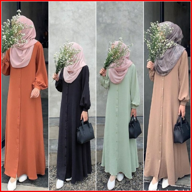 Gamis Khadijah Full Kancing Crinkle Airflow Adem Nyaman