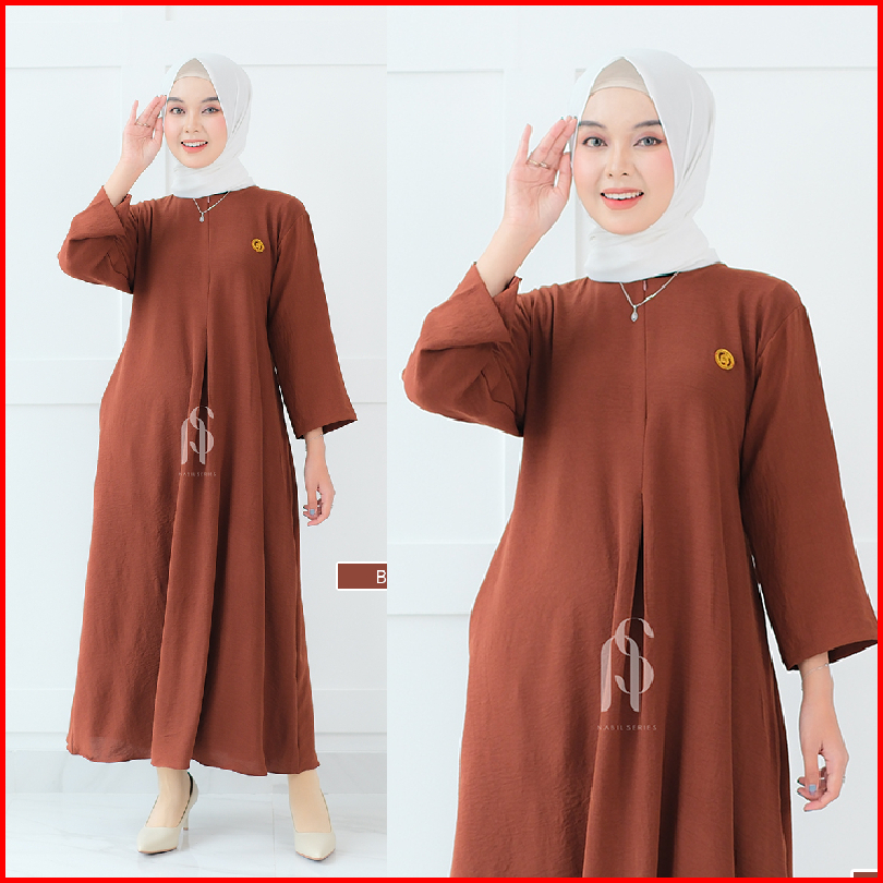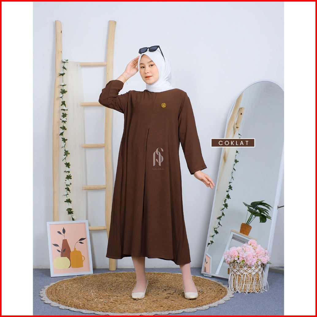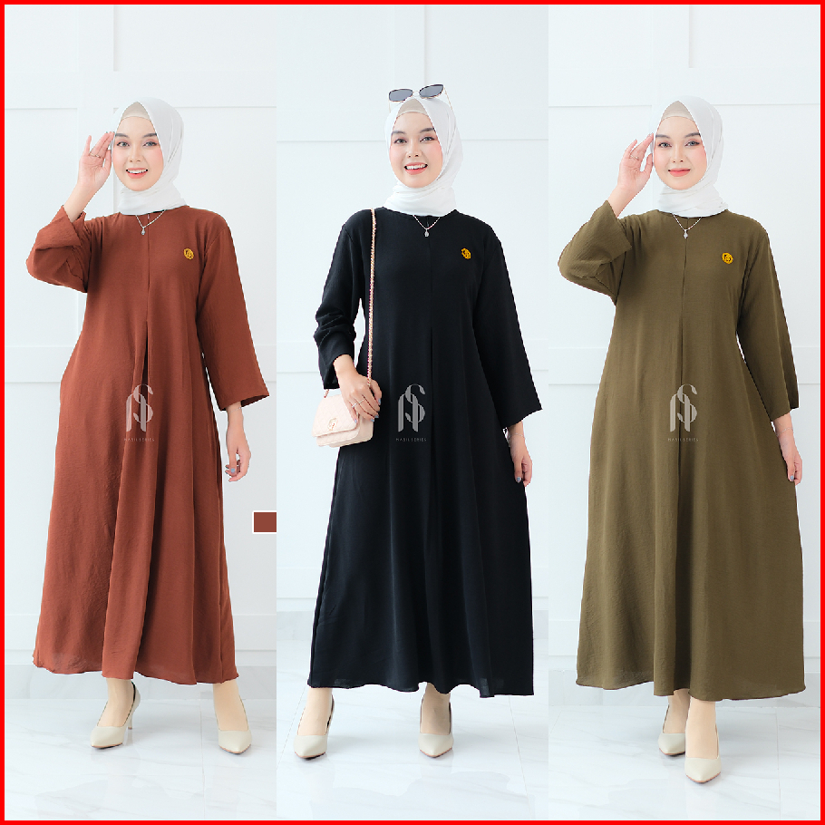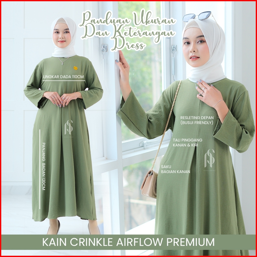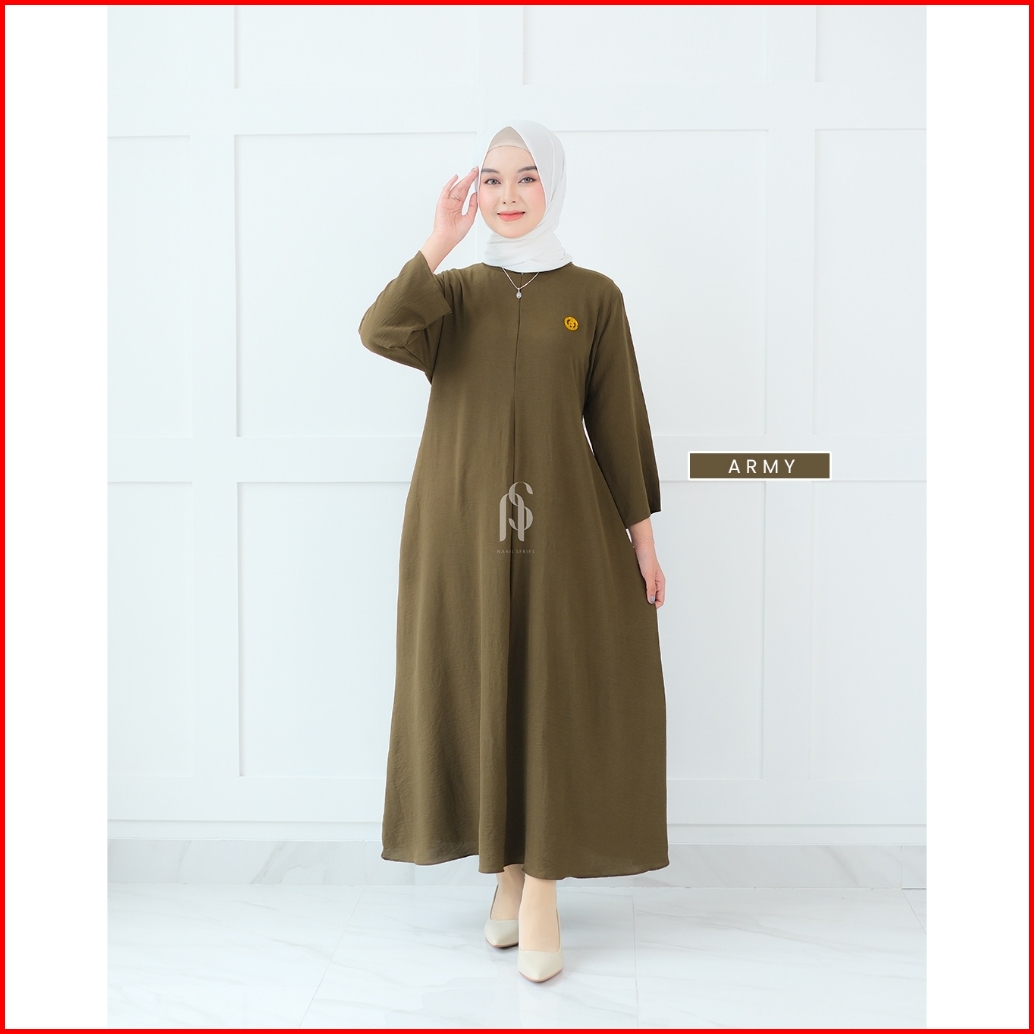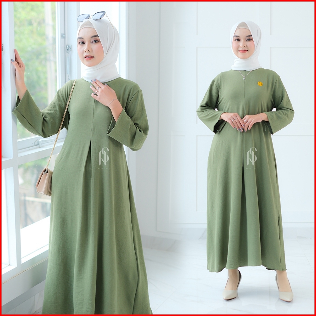 Gamis Crinkle Airflow Premium Adiba Midi Dress Baju Polos Wanita Terbaru Kekinian Semata Kaki Busui Friendly By Nabil Se