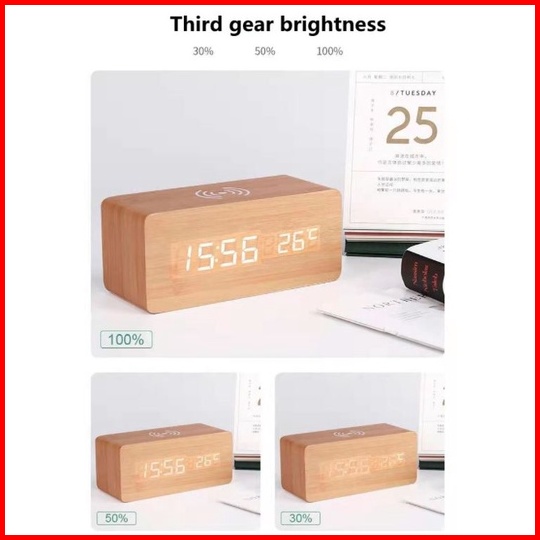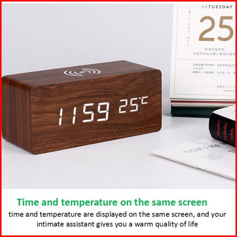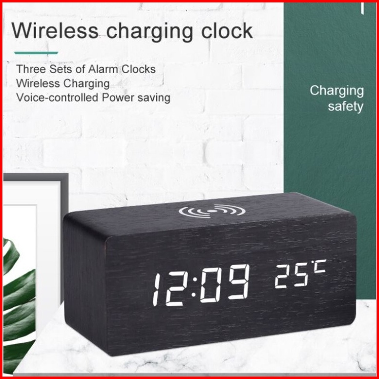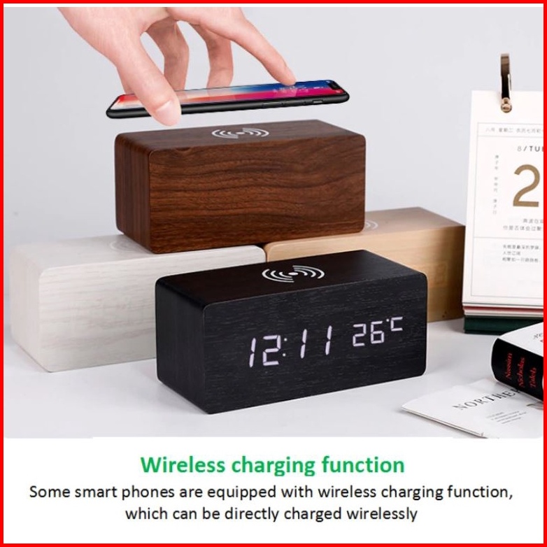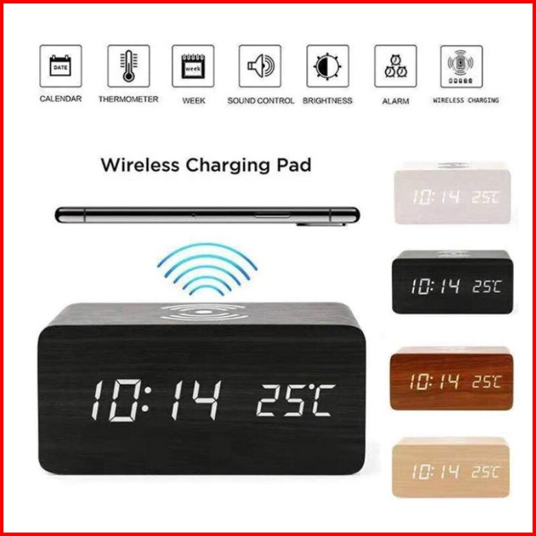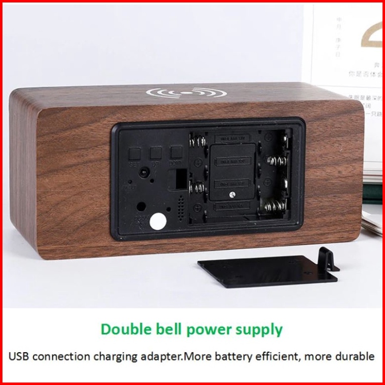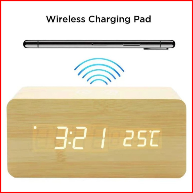 Jd-06 Jam Digital Kayu Led Weker Fitur Wireless Charging Wooded Alarm Led Clock Waker Suhu Temperature Date Tanggal Jam