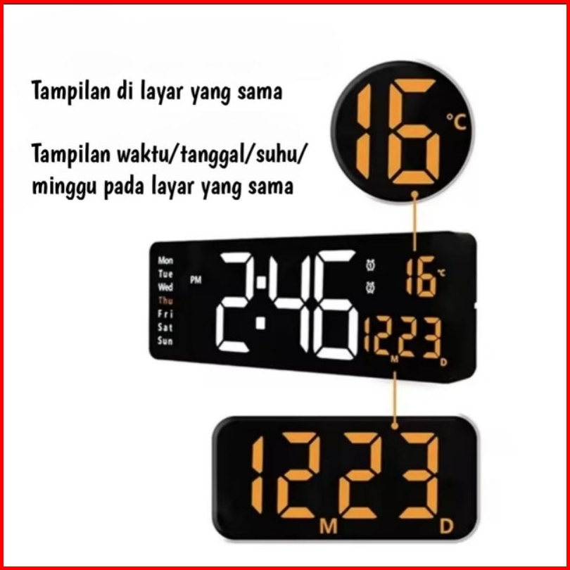 Jam Digital Led Besar Kalender Alarm Clock Weker Timer Countdown Smart Watch Pakai Remot 6629