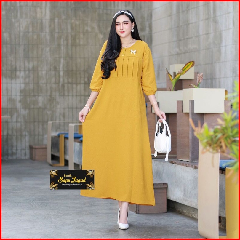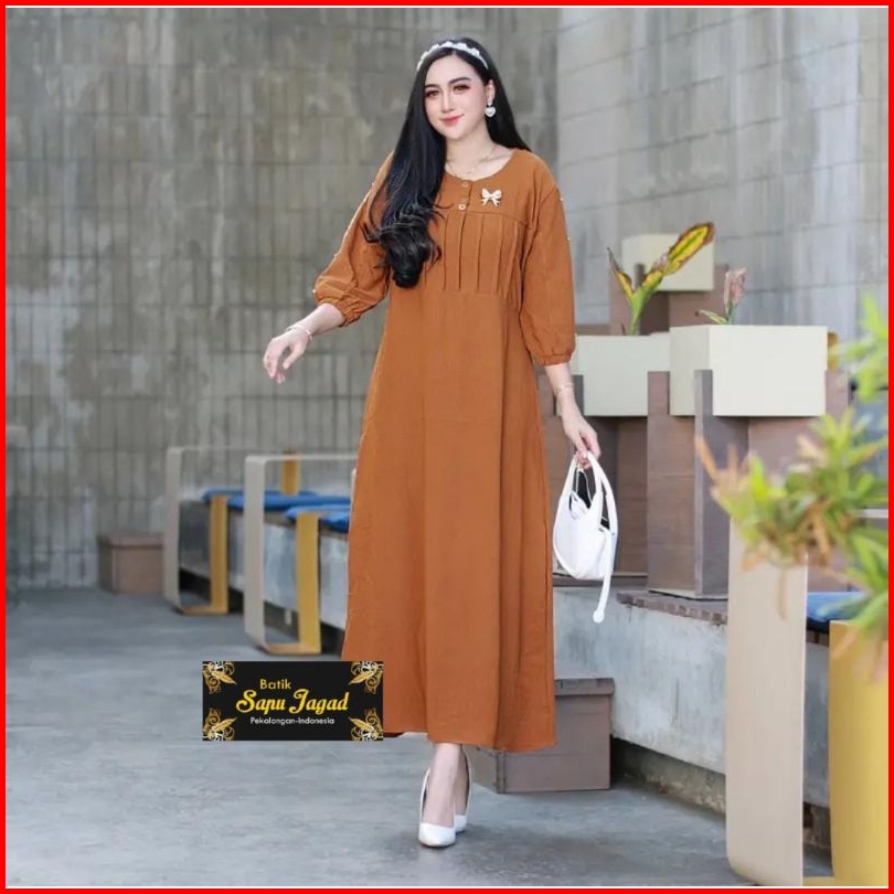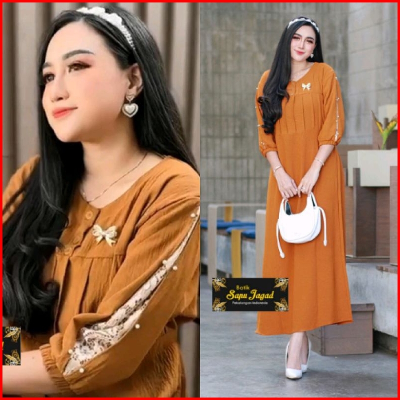 Gamis Cringkle Airflow Lengan 3 4 Kombinasi Brokat Midi Dress Kekinian Daster Terbaru By Batiksapujagad
