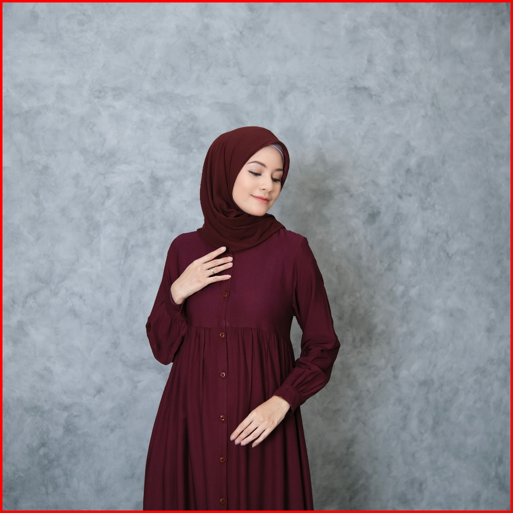 Gamis Full Kancing Rayon Twill Gamis Polos Premium Muslim Wanita Gamis Lengan Kancing