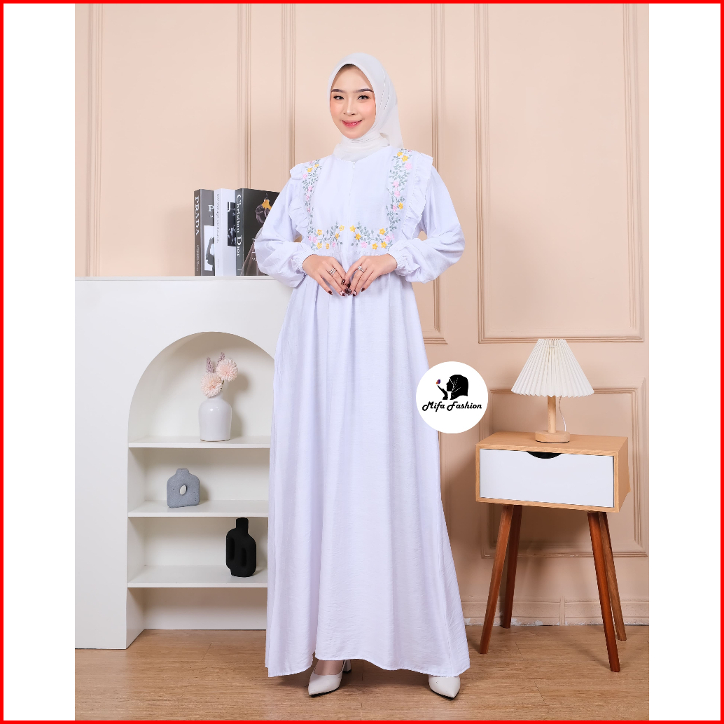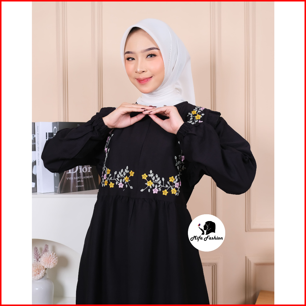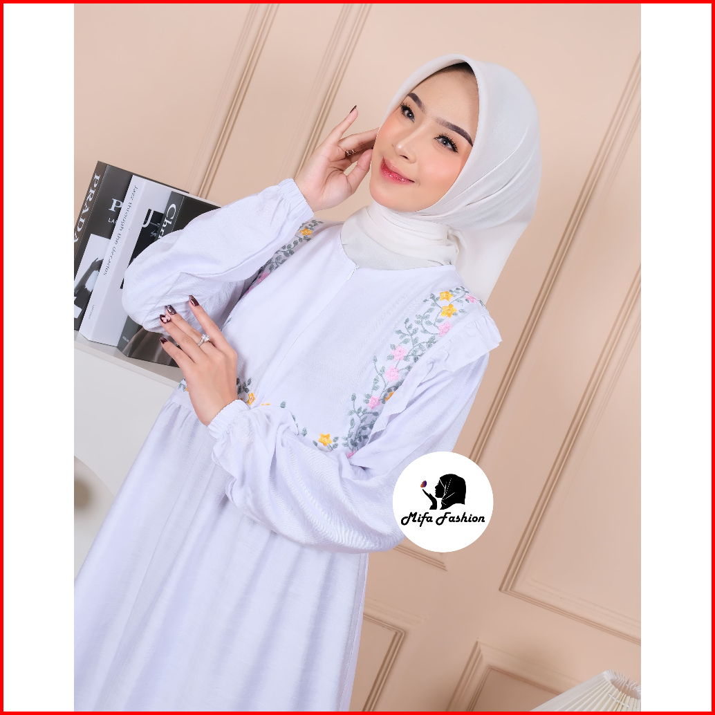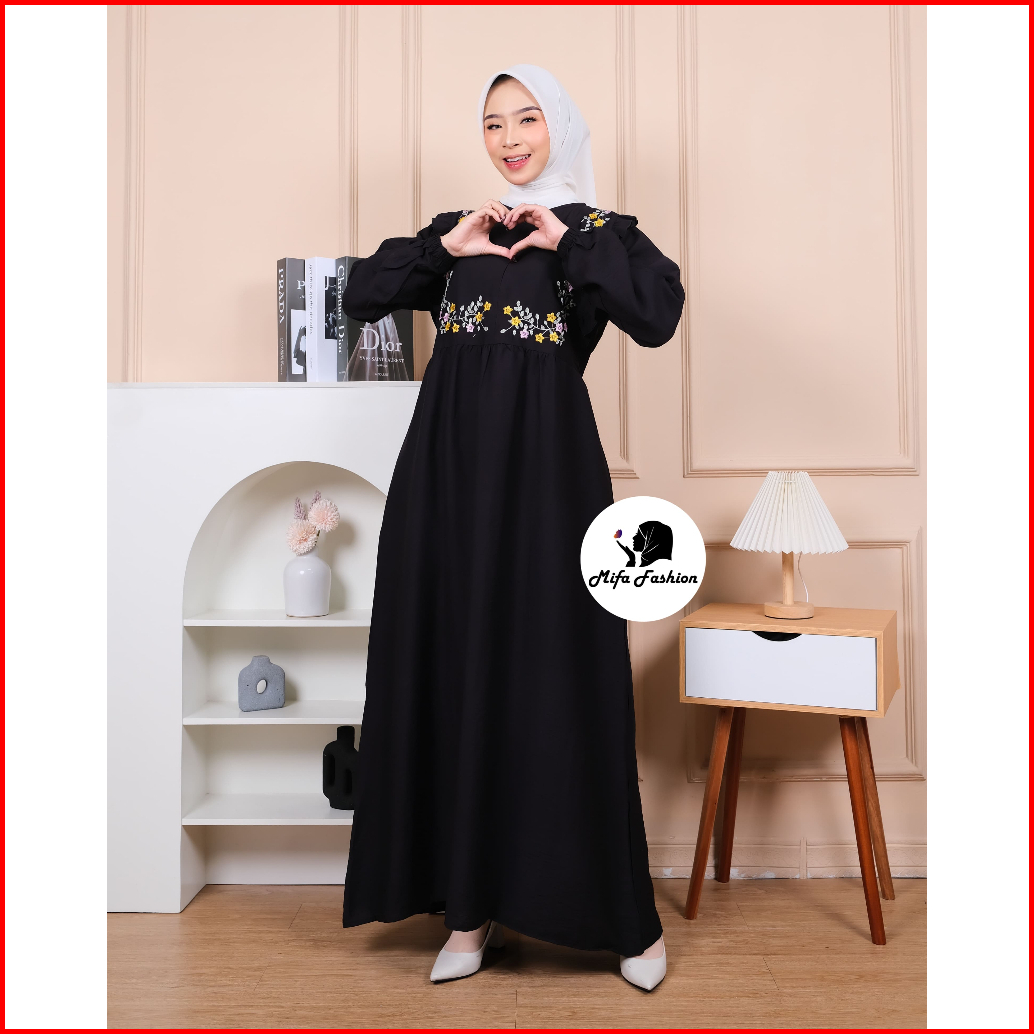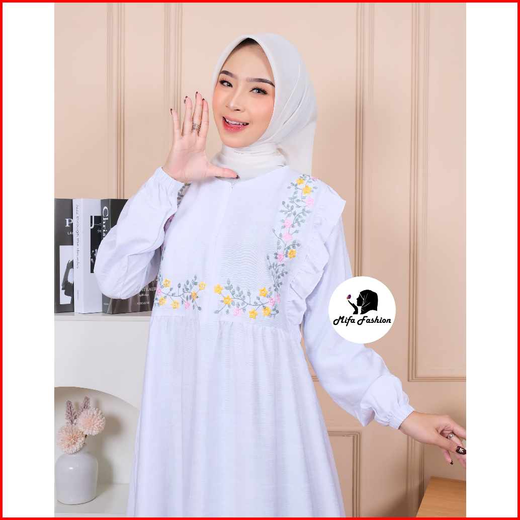 Zora Gamis Wanita Mewah Elegan Dress Kondangan Muslim Bahan Pollo Linen Bordir Bunga Busui Friendly