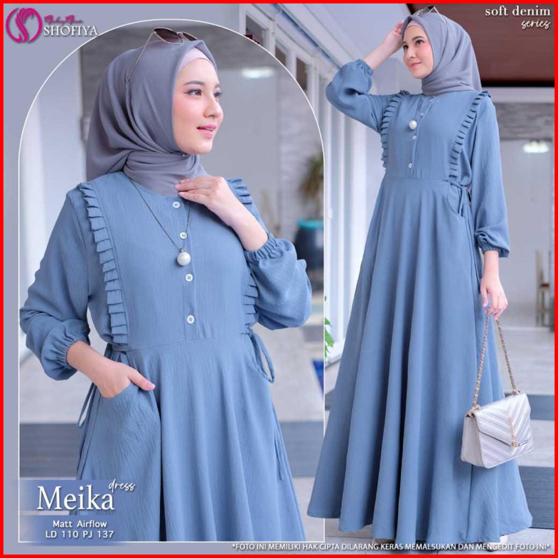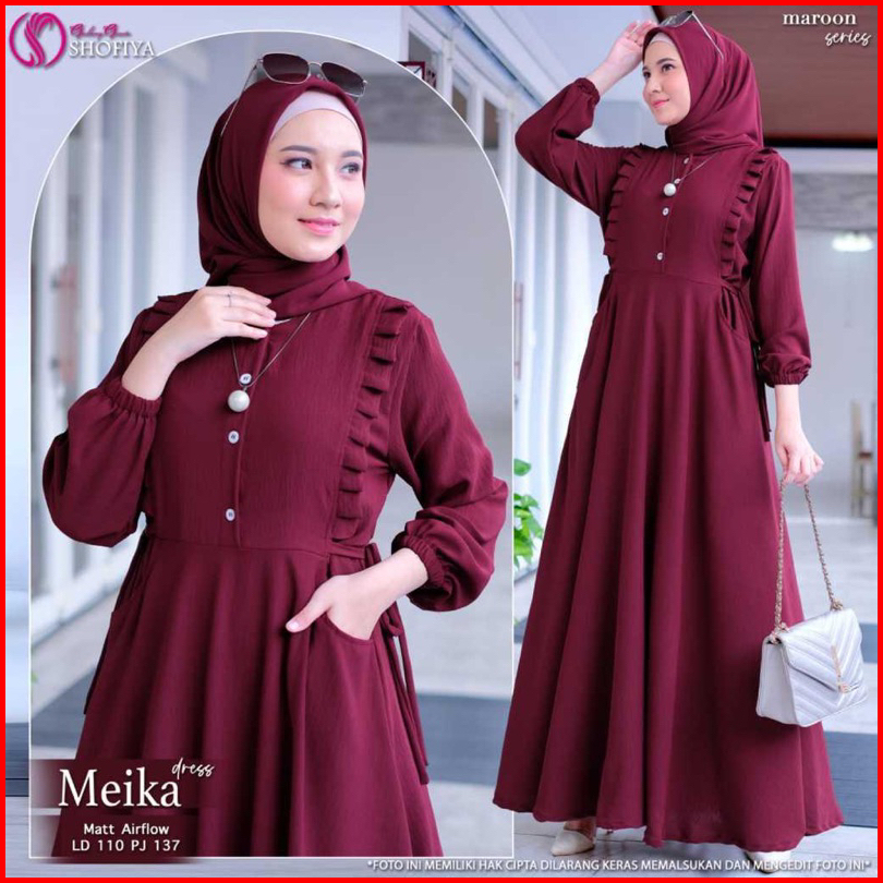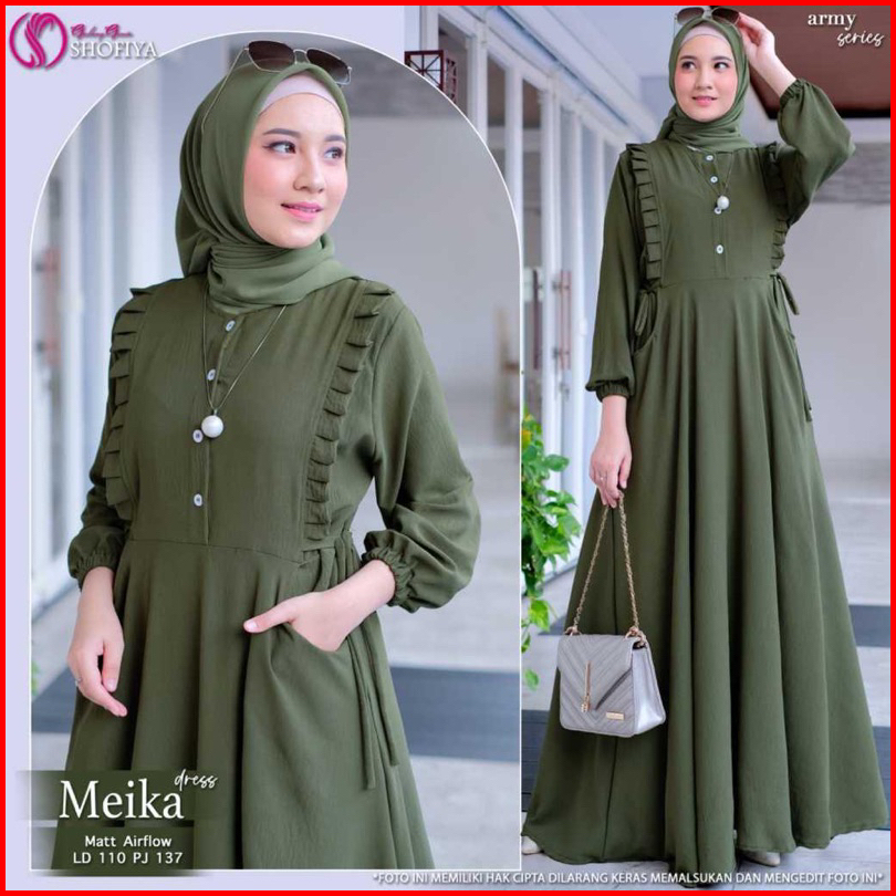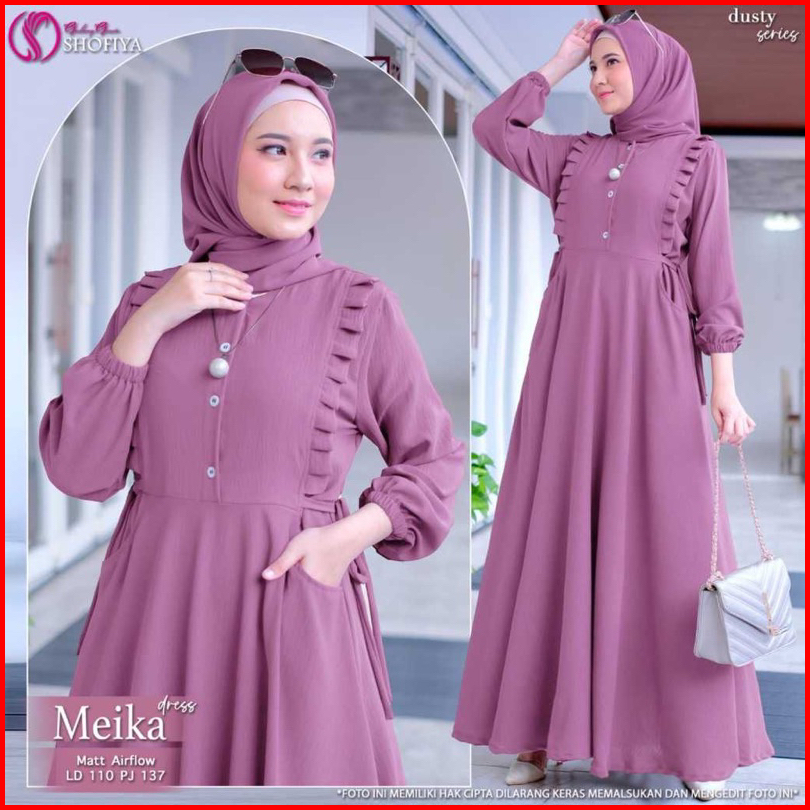 Gamis Meika Ld 110 - 130 Bahan Cringkel Airflow Gamis Rempel Wanita Muslimah