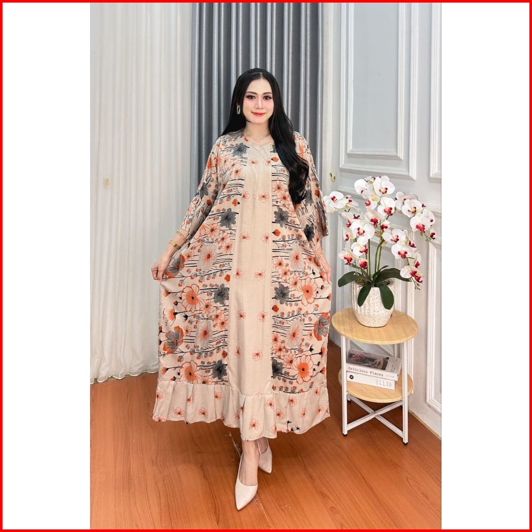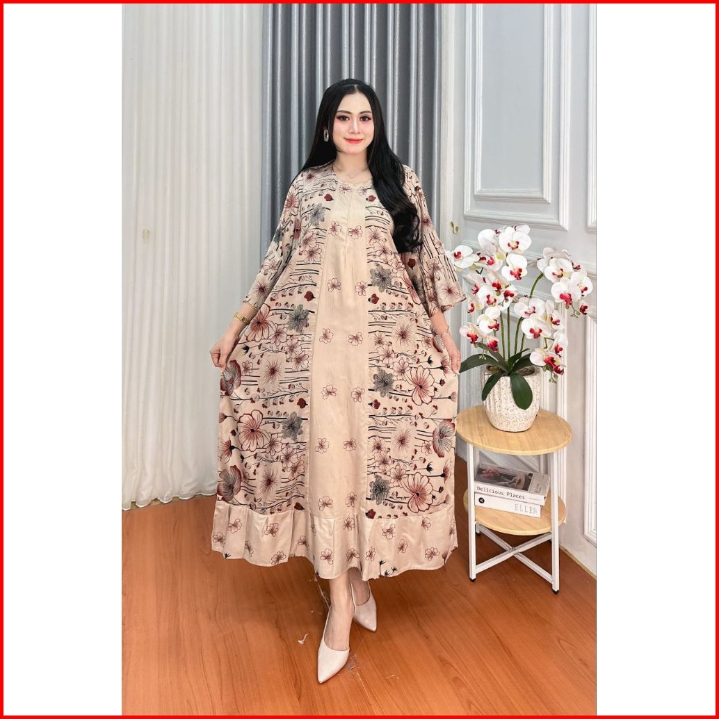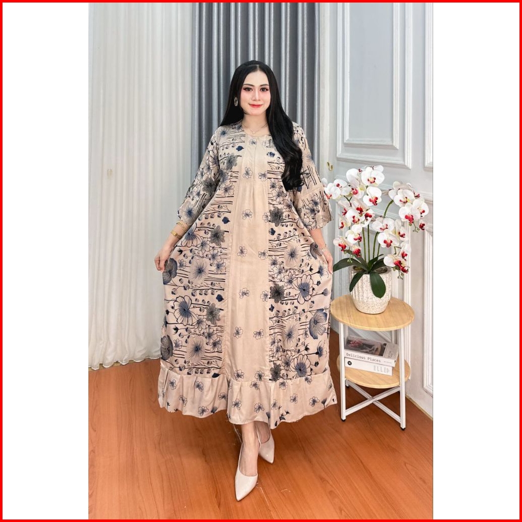 Dress Wanita Motif Lengan 7 8 Sekdress Rayon Jumbo Dress Rayon Susun Bawah Busui Friendly