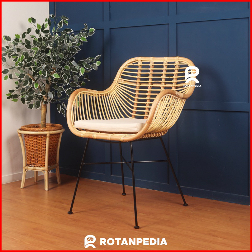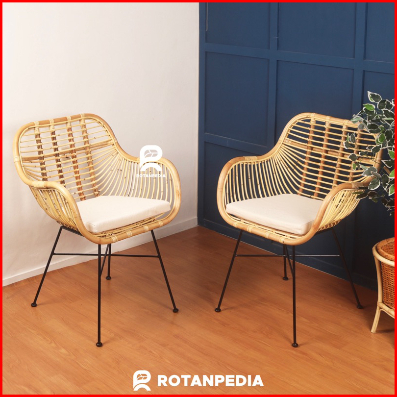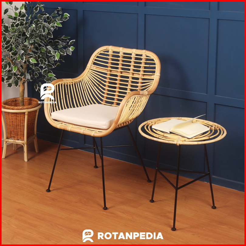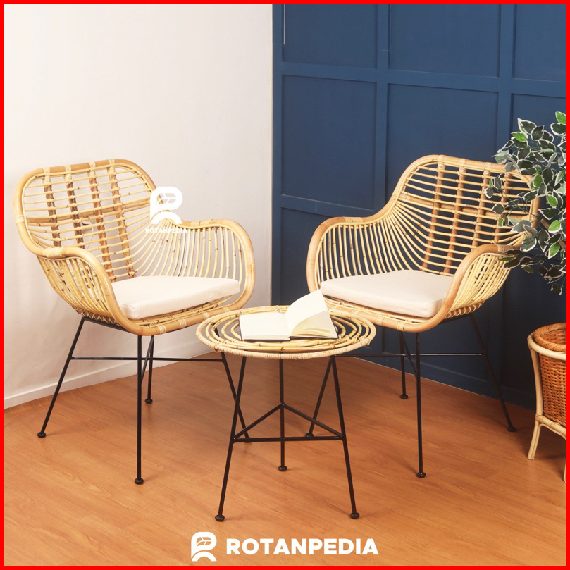 Kursi Teras Rotan Minimalis Rangka Besi 1 Set Kursi Cafe Kursi Makan Rotan - Rotanpedia
