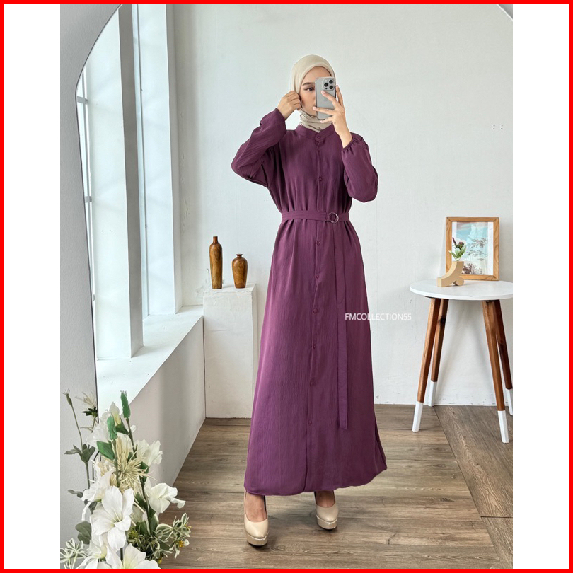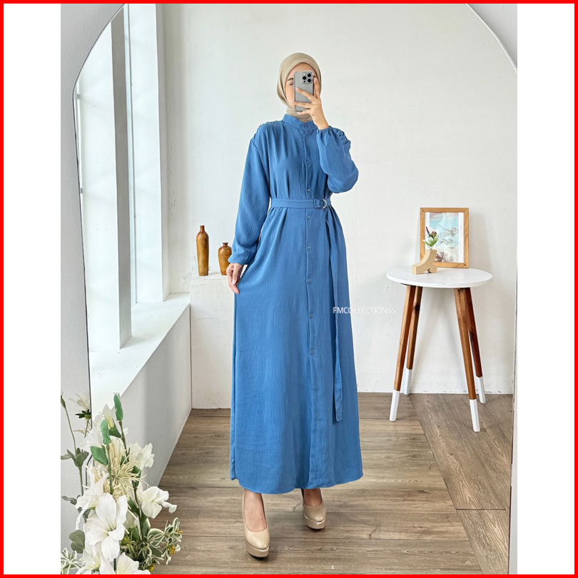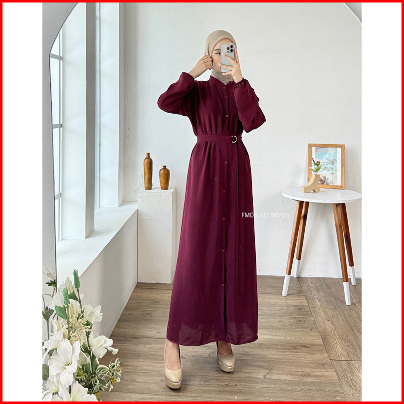 Loca Dress Gamis Full Kancing Crinkle Airflow Ld 110 Gamis Muslimah Terbaru Remaja Loca Dress Kayla Dress Gamis Kancing