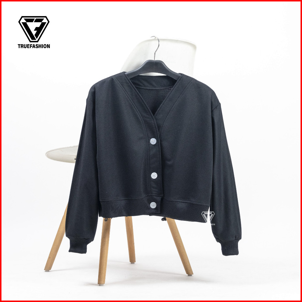 Cardigan Crop Lalisa K-pop Style Sweater Allsize Baju Wanita Bahan Fleece Tebal Dan Lembut