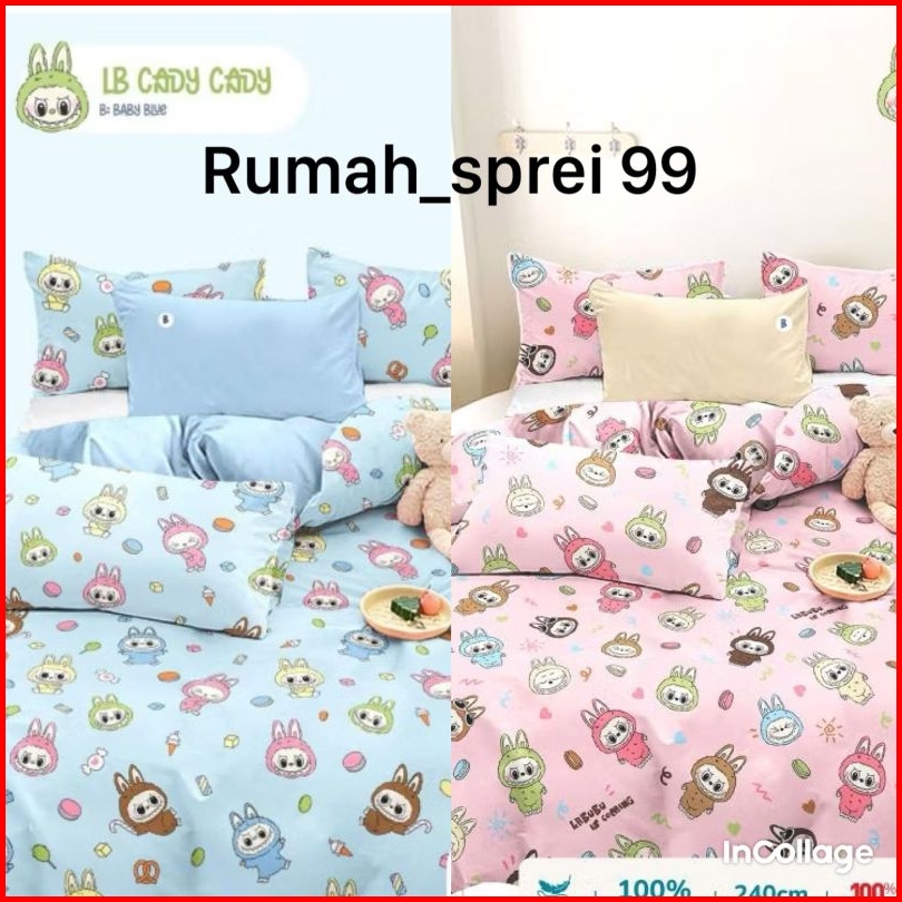 Promo Sprei Set Labubu Kuromi Katun Micro Uk 180x200 160x200 120x200 90x200