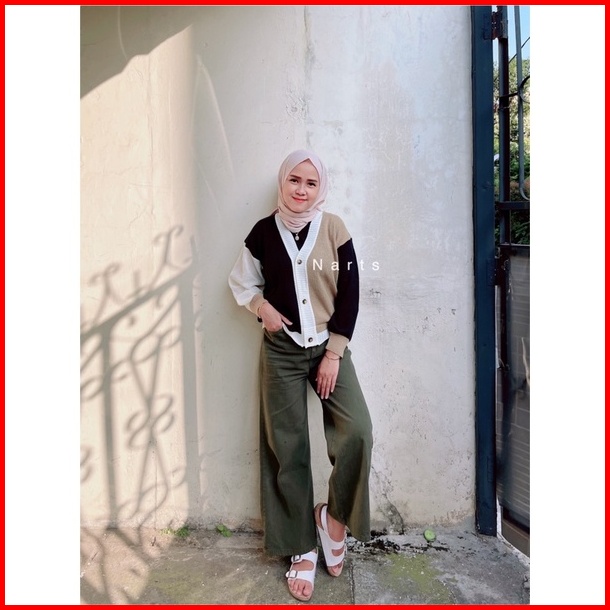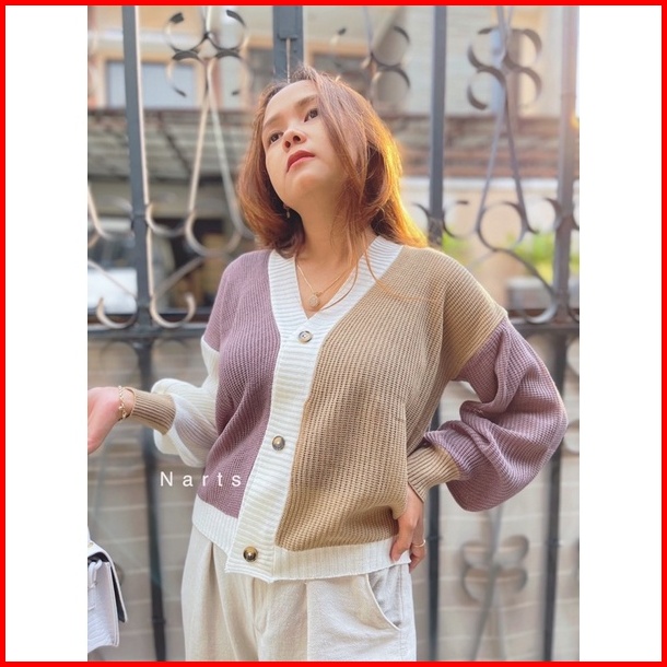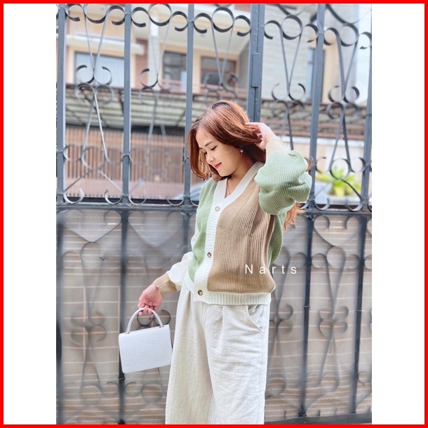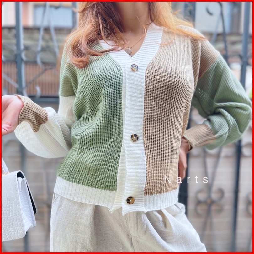 Candy Outer Cardy 3 Tone Atasan Baju Rajut Wanita Korea Style