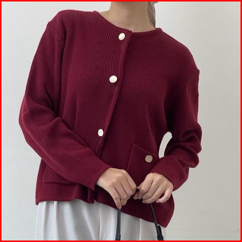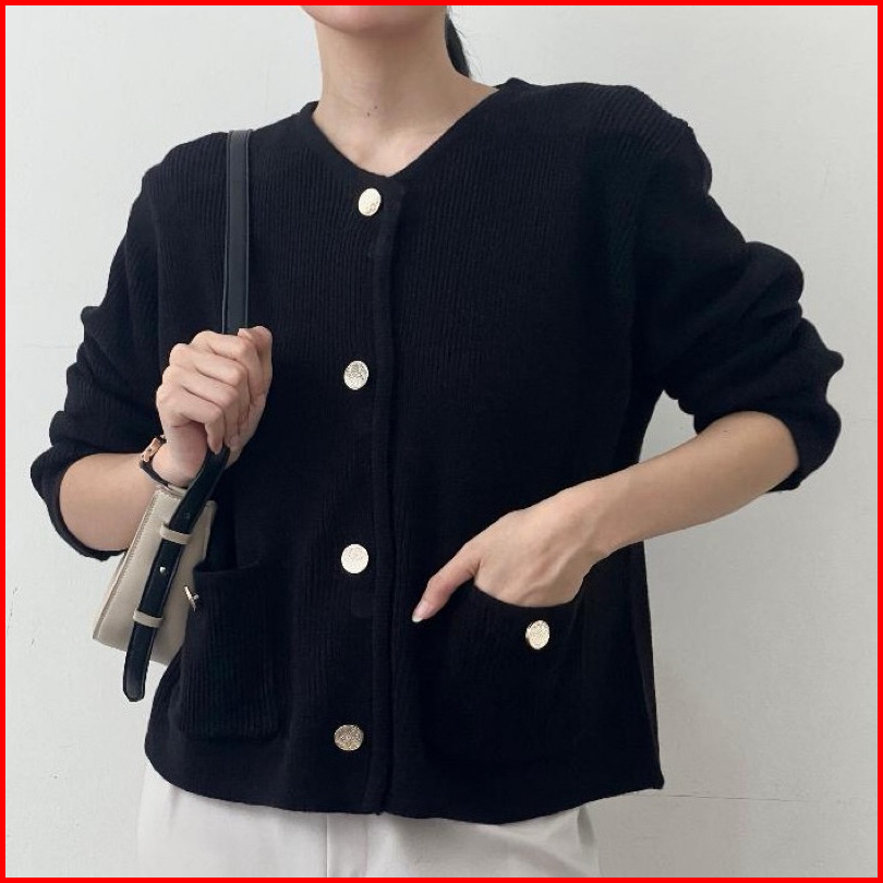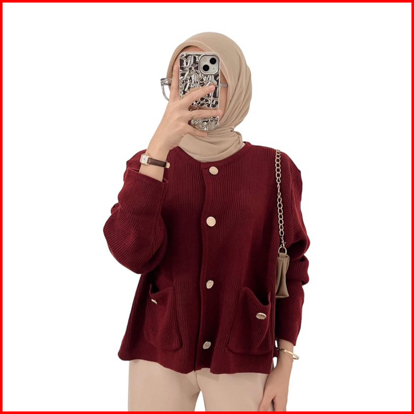 Cardigan Rajut Wanita Lengan Panjang Motif Kancing Metha Knite Cardy