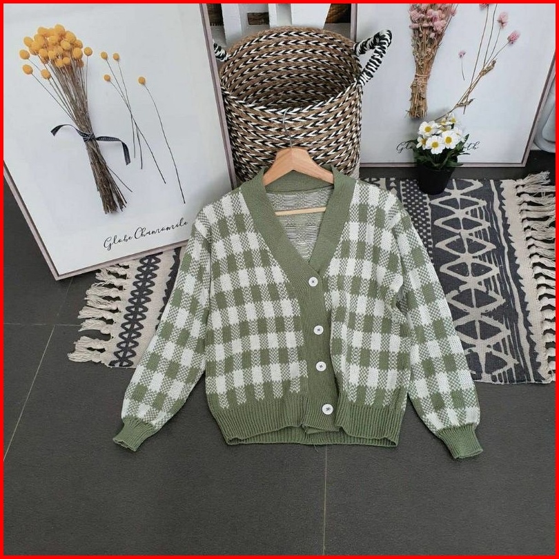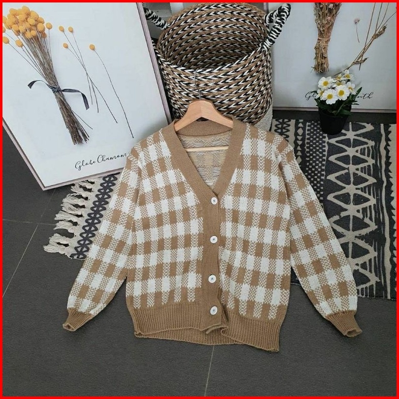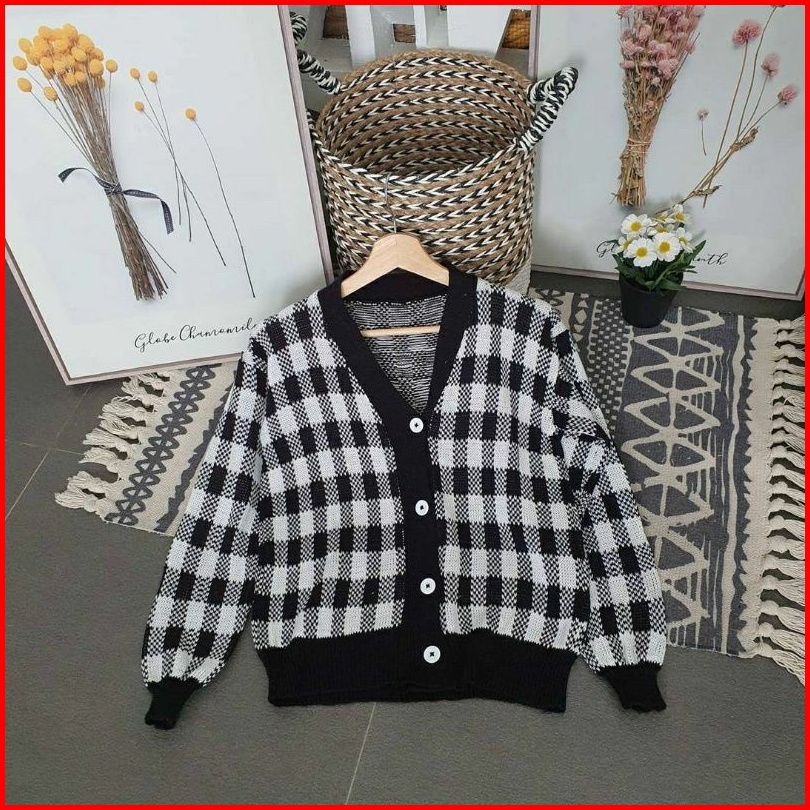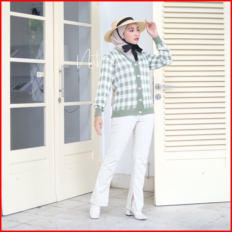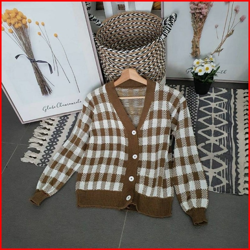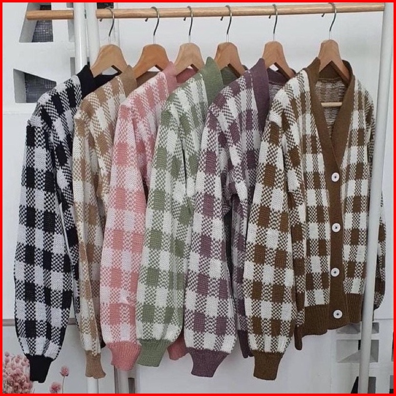 Square Cardy Cardigan Kotak-kotak Atasan Wanita Rajut Cardigan By Narts Id