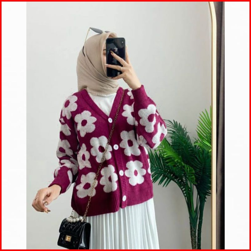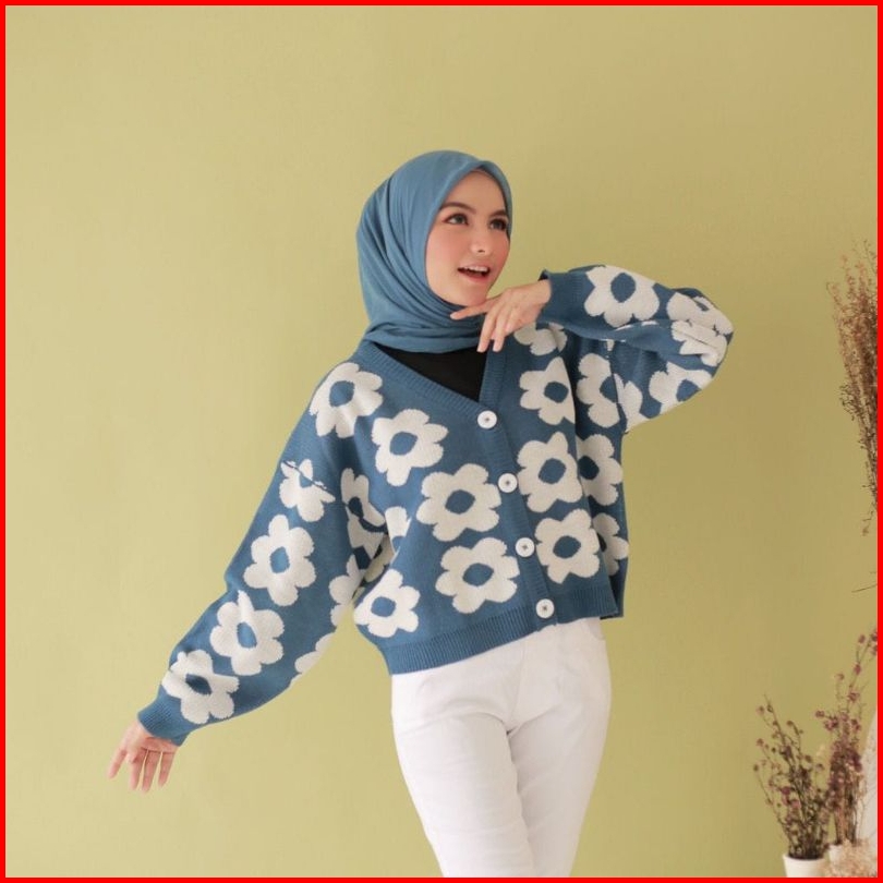 Kardigan Bunga Urban Cardigan Flower Urban Knit Cardigan Bunga Rajut Cardigan Wanita Rajut