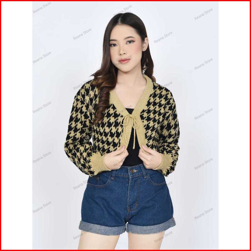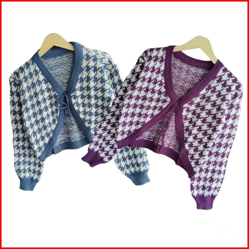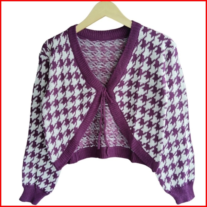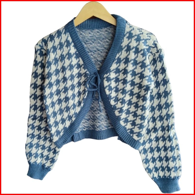 Kardigan Rajut Bolero Houndstooth Cardigan Crop Top Houndtooth Bolero Rajut Tali