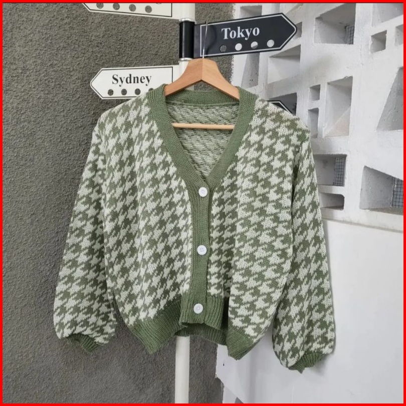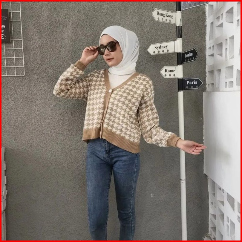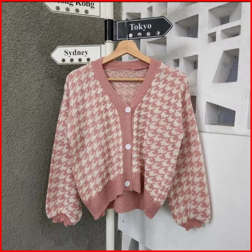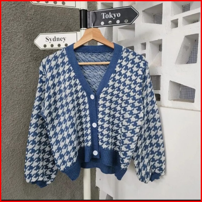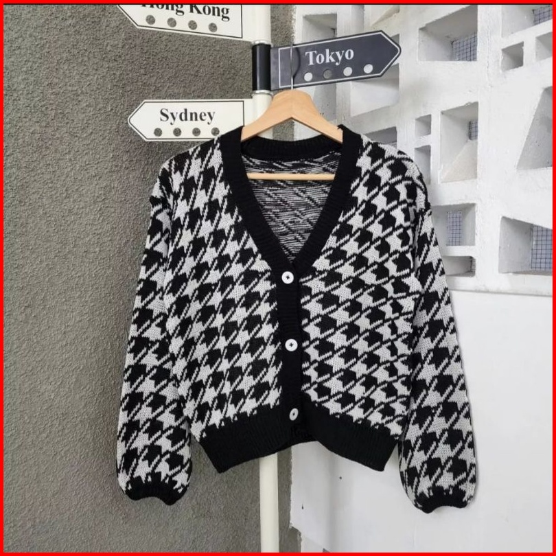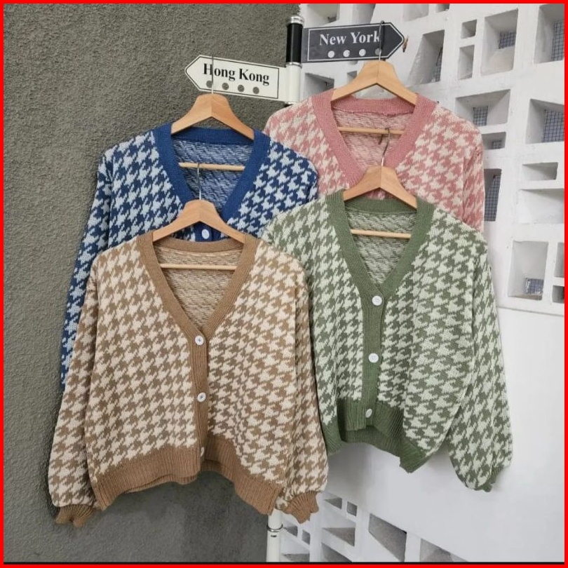 Cardigan Hounstooth Cardigan Wanita Rajut Outhers Wanita Fashion Rajut Wanitar