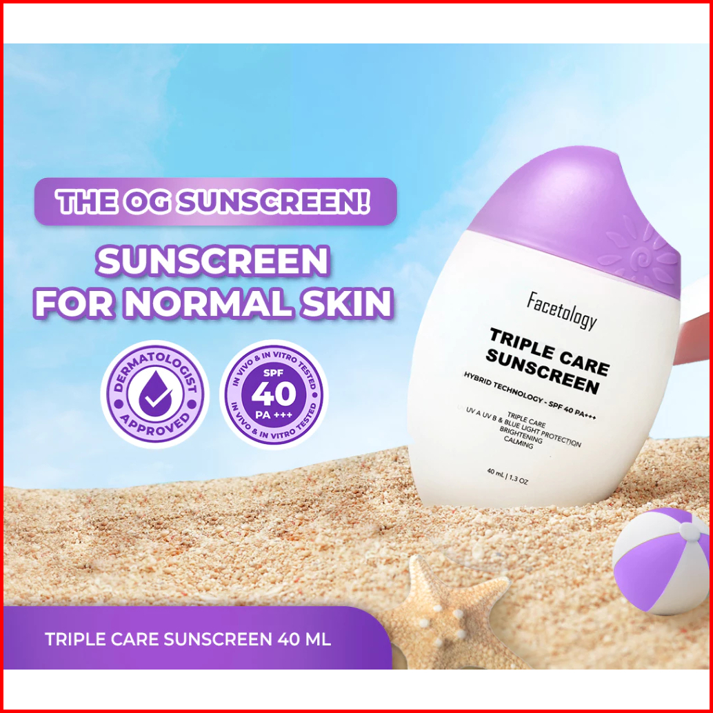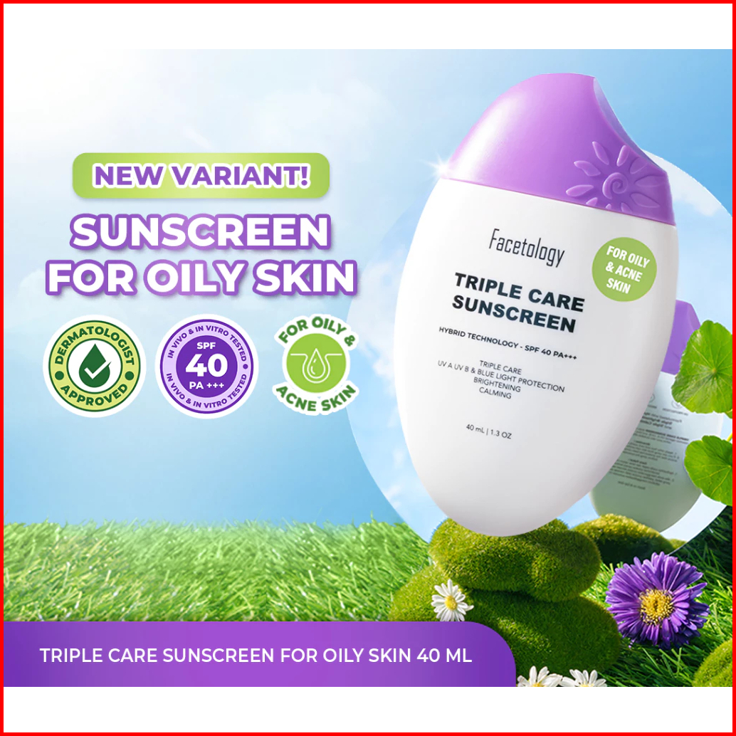 Facetology Triplecare Sunscreen Spf 40 Pa Normal Skin Oily Acne Skin Tinted Spf 50