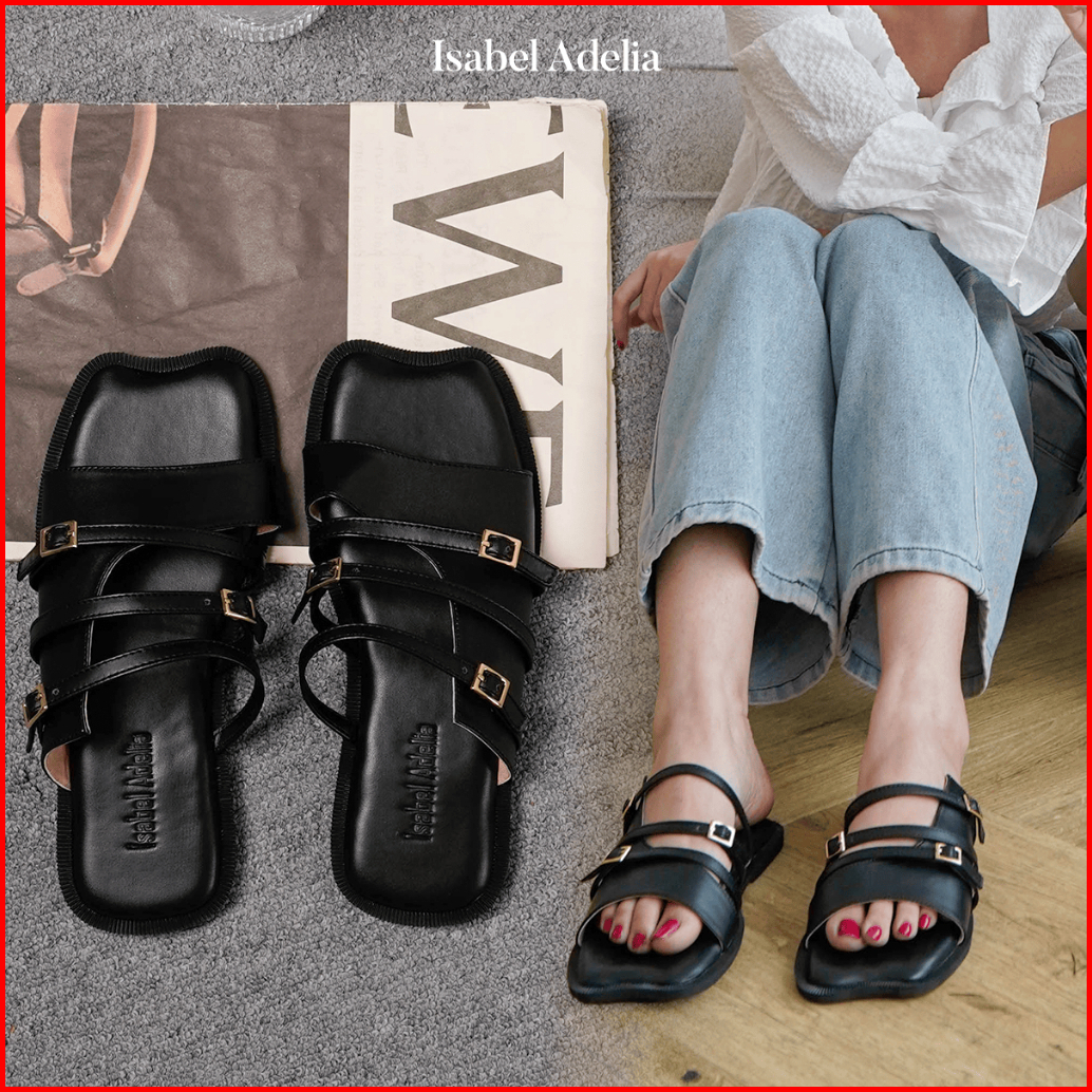 Isabel Adelia Harlow Sandal Wanita Slip On Elegan Teplek Tali Korean Style Empuk