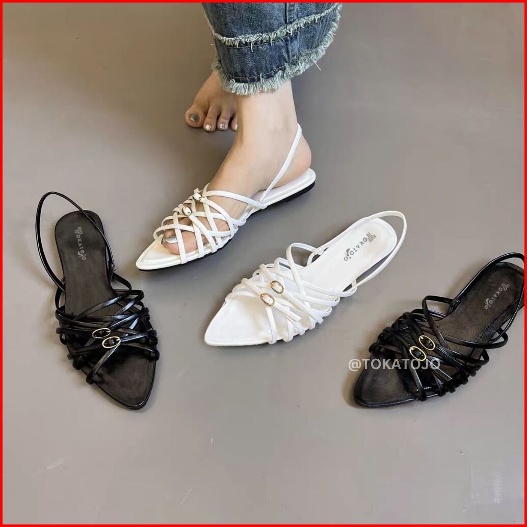 Hirumi Sandal Wanita Flat Tali Silang Gesper Sendal Keronjo Wanita Kekinian