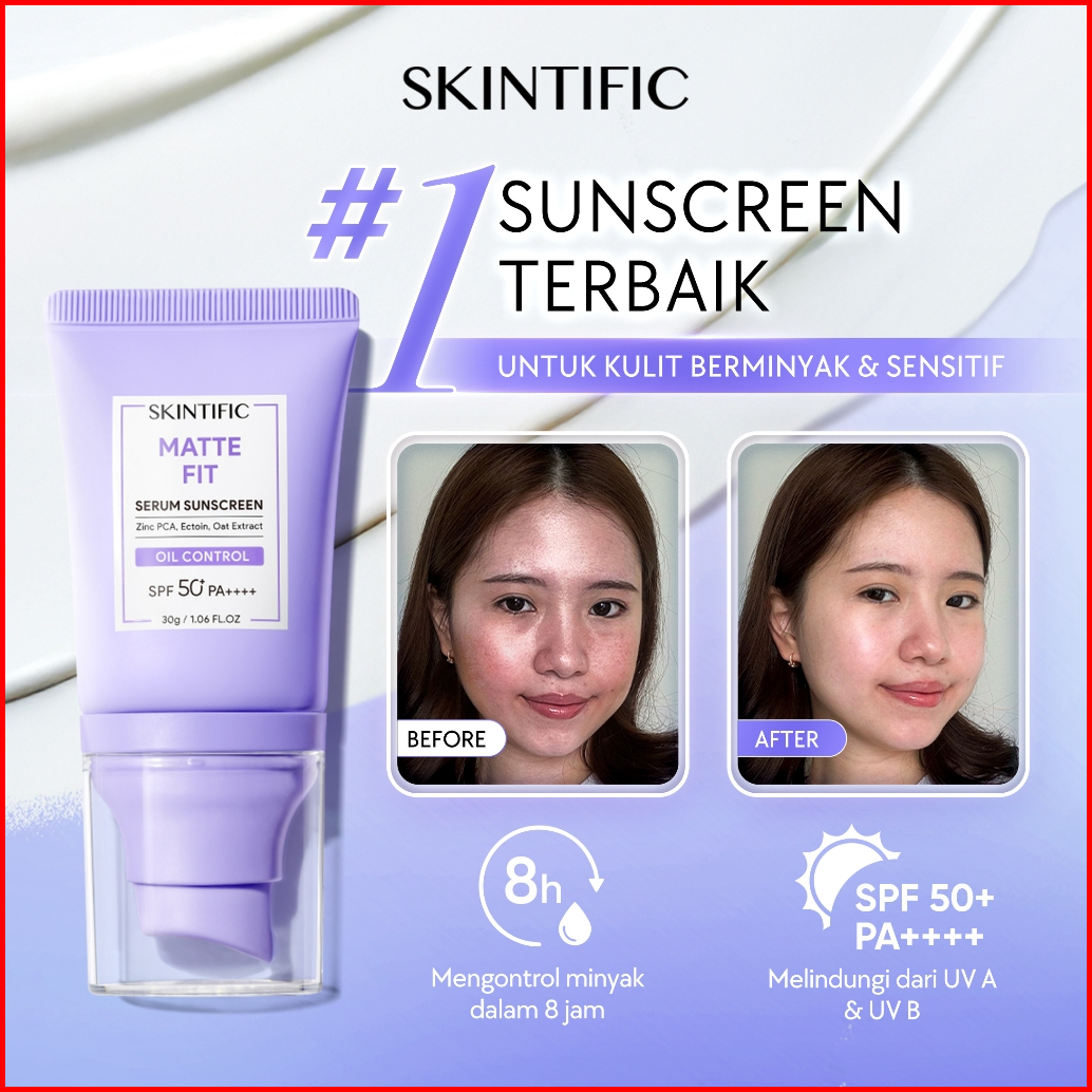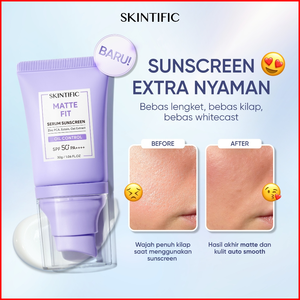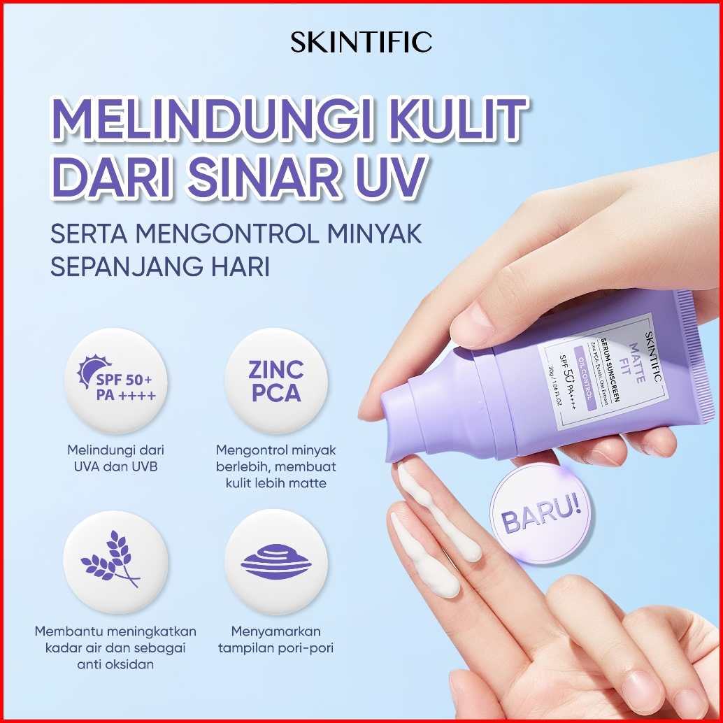 Skintific - Matte Fit Serum Sunscreen Spf50 Pa Anti Uv Oily And Acne Prone Skin Under Make Up Antioxidant 12 Hours Long-