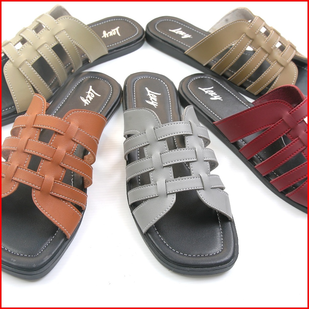 Lexy Inaya Sandal Wanita Teplek Kokop Gladiator Kulit