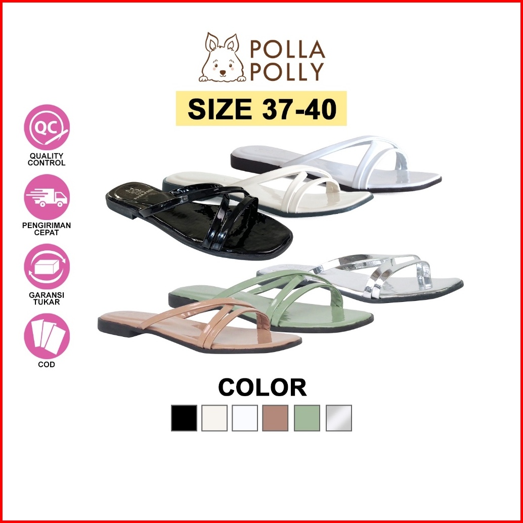 Polla Polly X Hikaru - Sandal Flat Wanita Teplek Minimalis Santai Ootd - 37-40