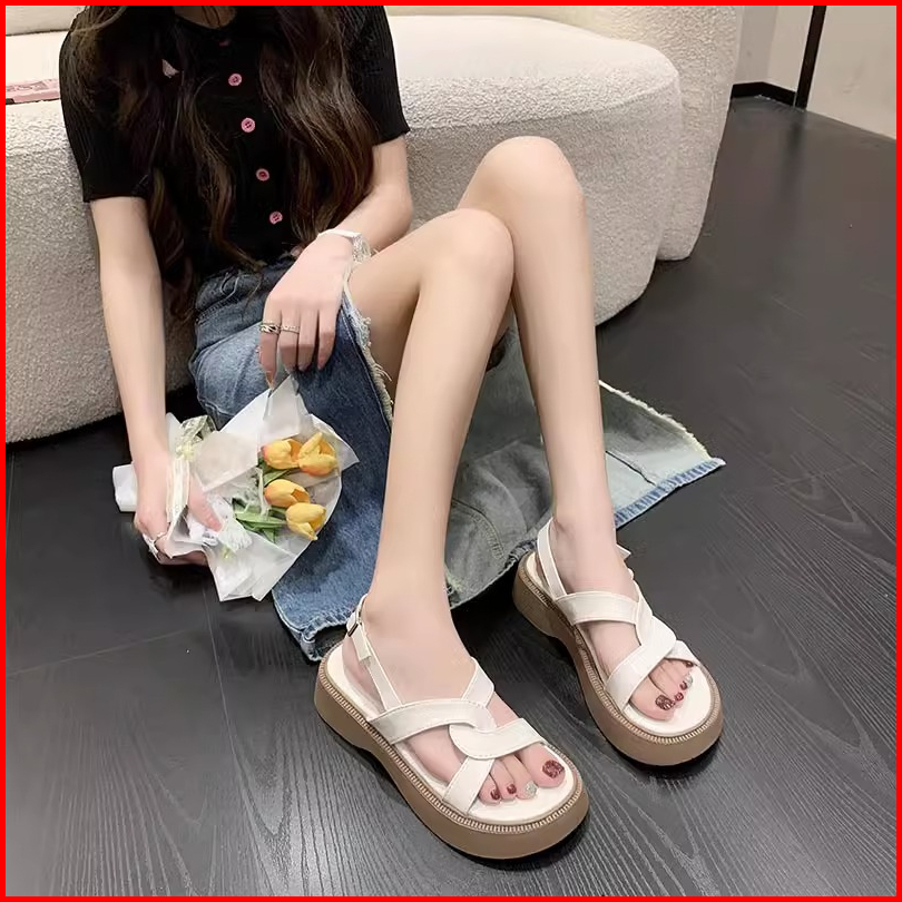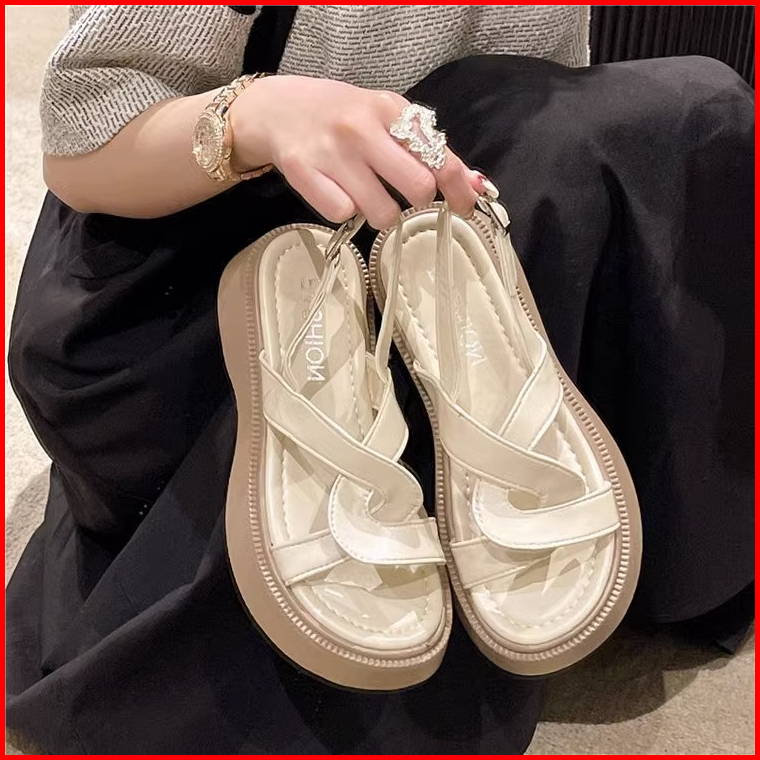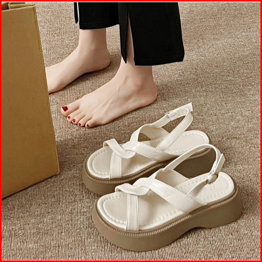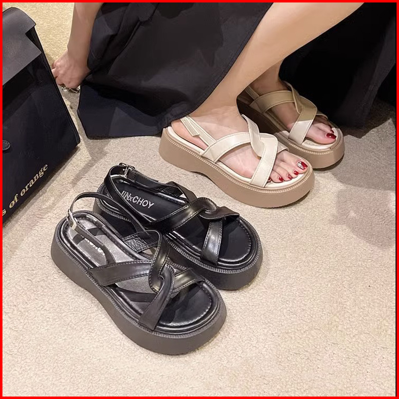 Qns Sepatu Sandal Wanita Kekinian Putih Hitam Sandal Wedges Spons Slip-on Sepatu Wanita Premium Quality Women Fashion Sh