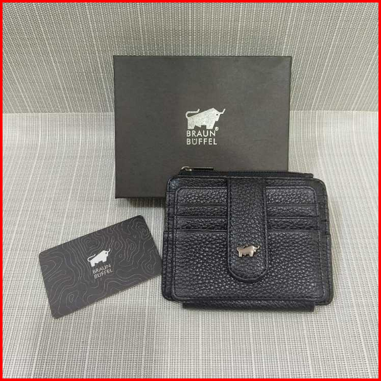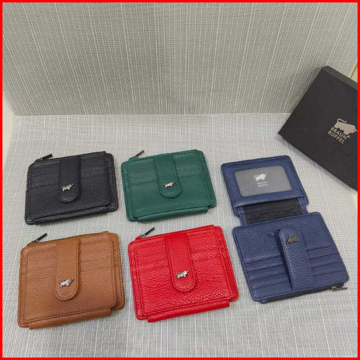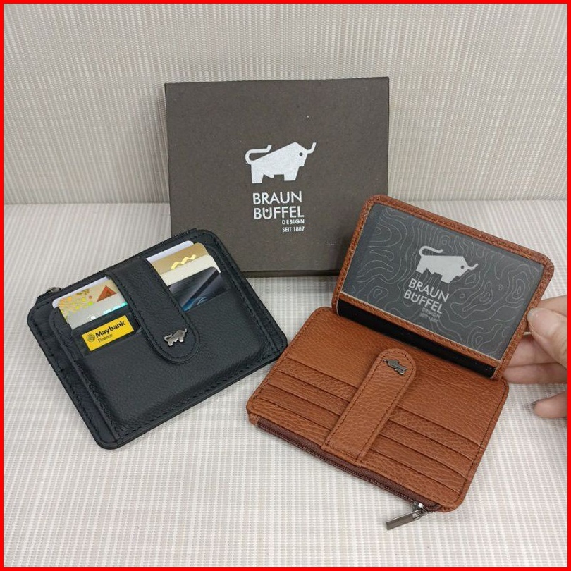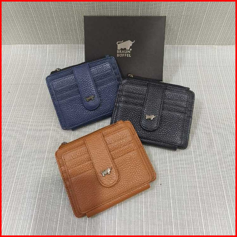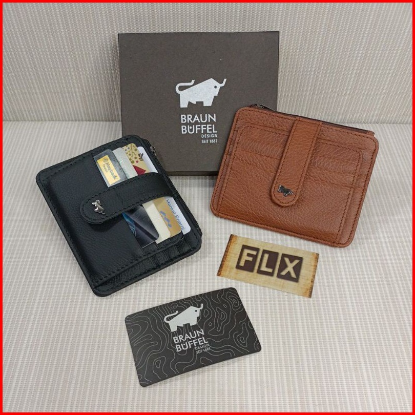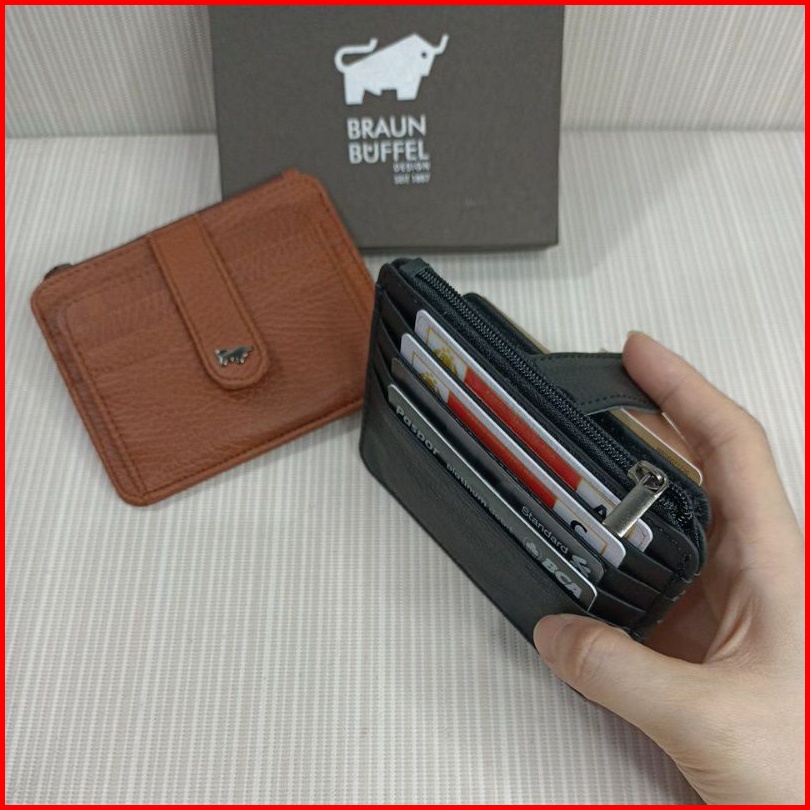Dompet Kartu Kancing Sleting Kulit Sapi Asli Box