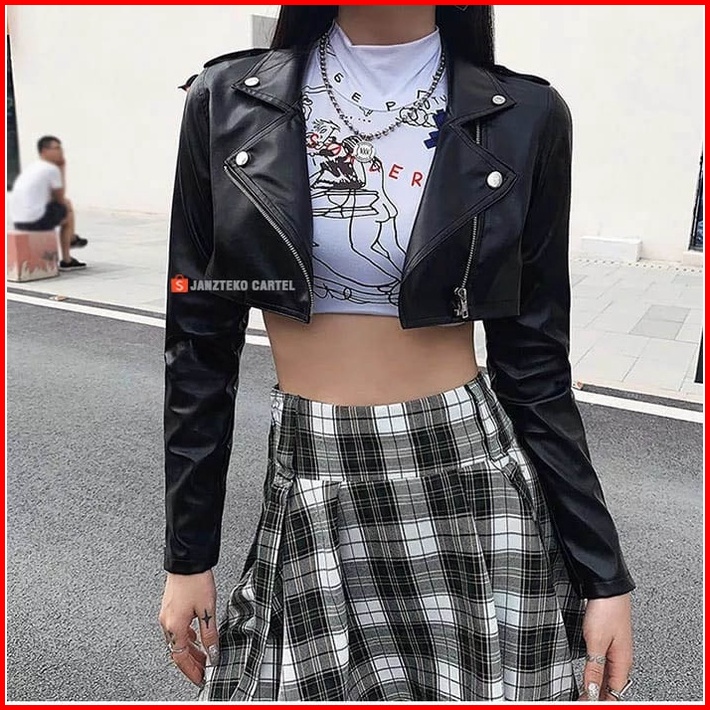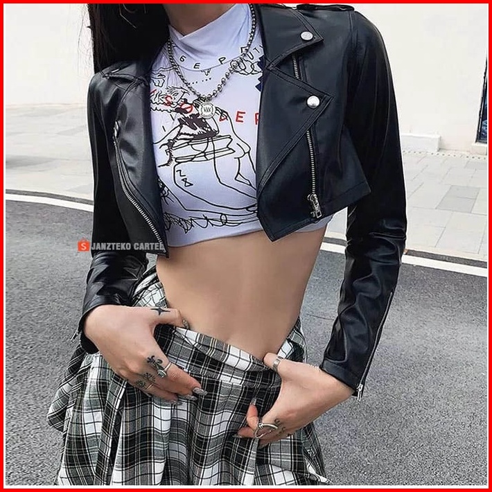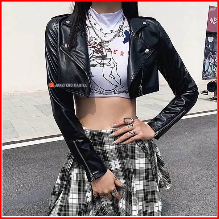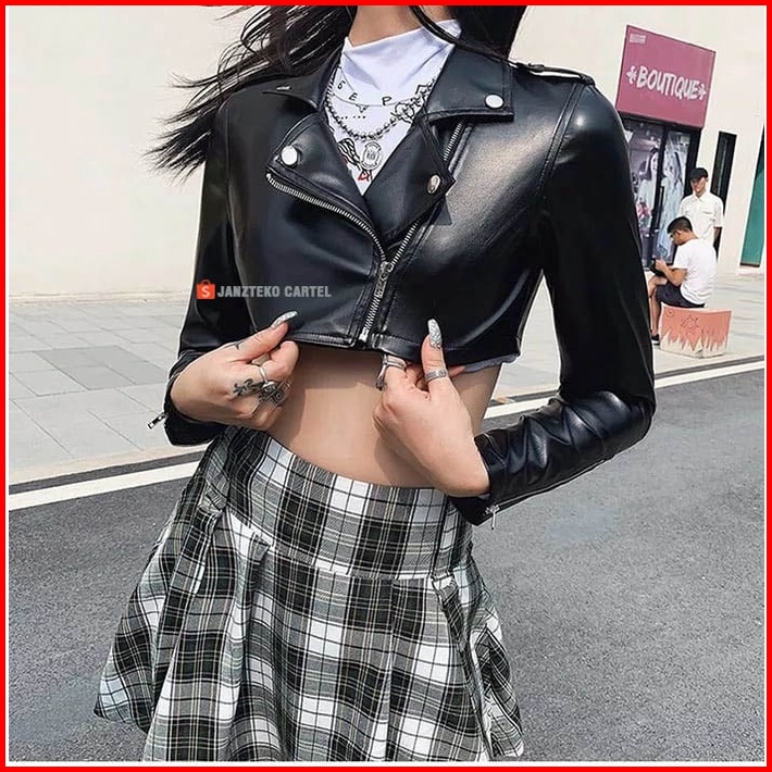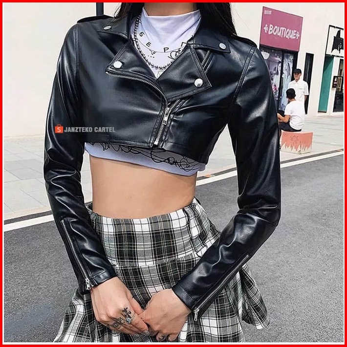 Jnk X Bella - Jaket Crop Top Wanita Slim Fit Bahan Semi Kulit Sintetis Viena Faux Synthetic Leather Premium Original