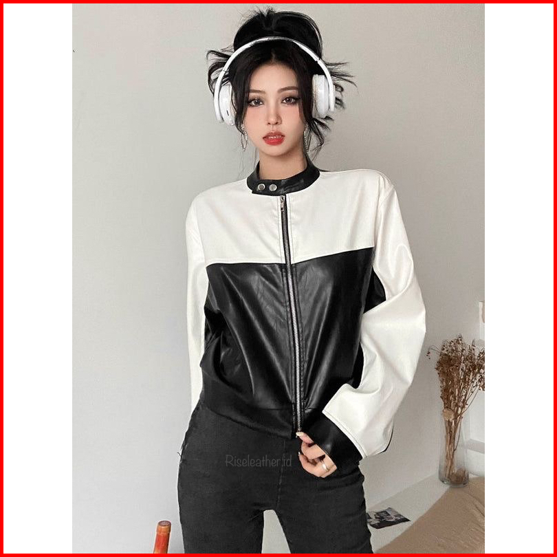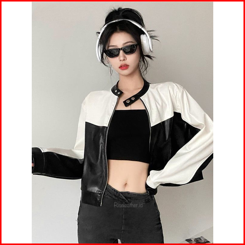 Riseleather-jaket Kulit Wanita Monoblock Motorcycle Crop