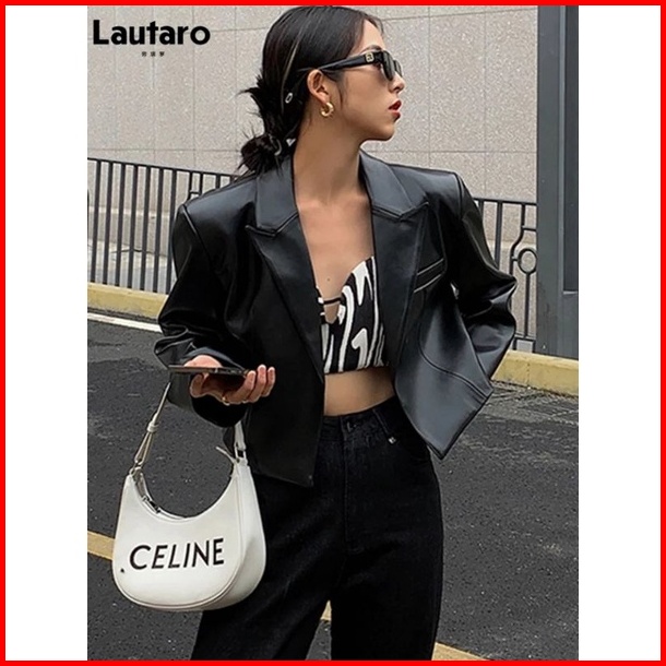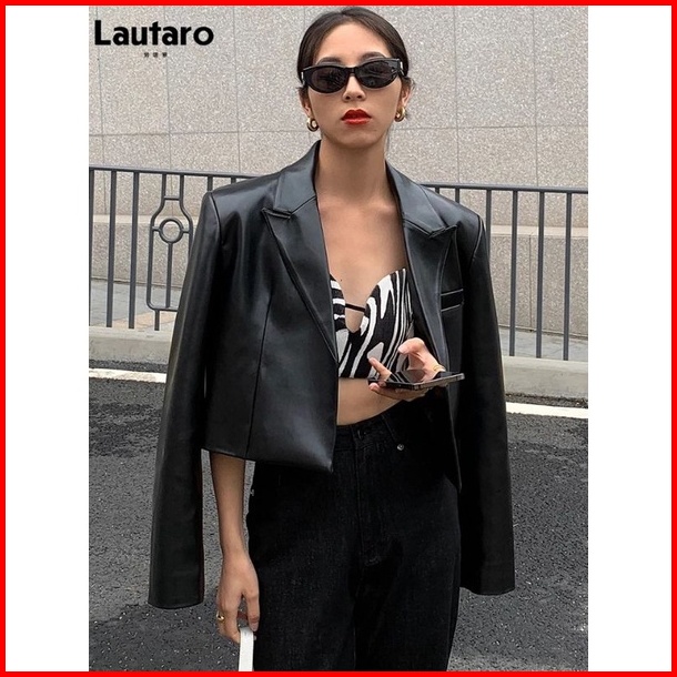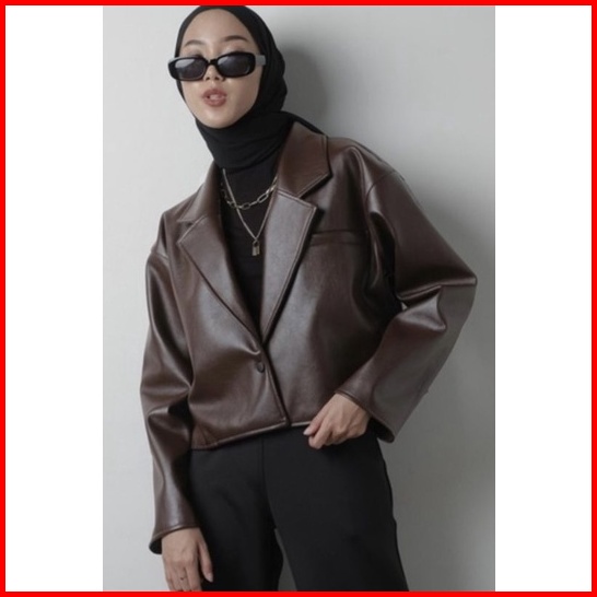 Jaket Kulit Jas Crop Fitt Blazer Top Pendek Korea Terlaris Hijab Fashion Cr Lembut Nyaman Atasan