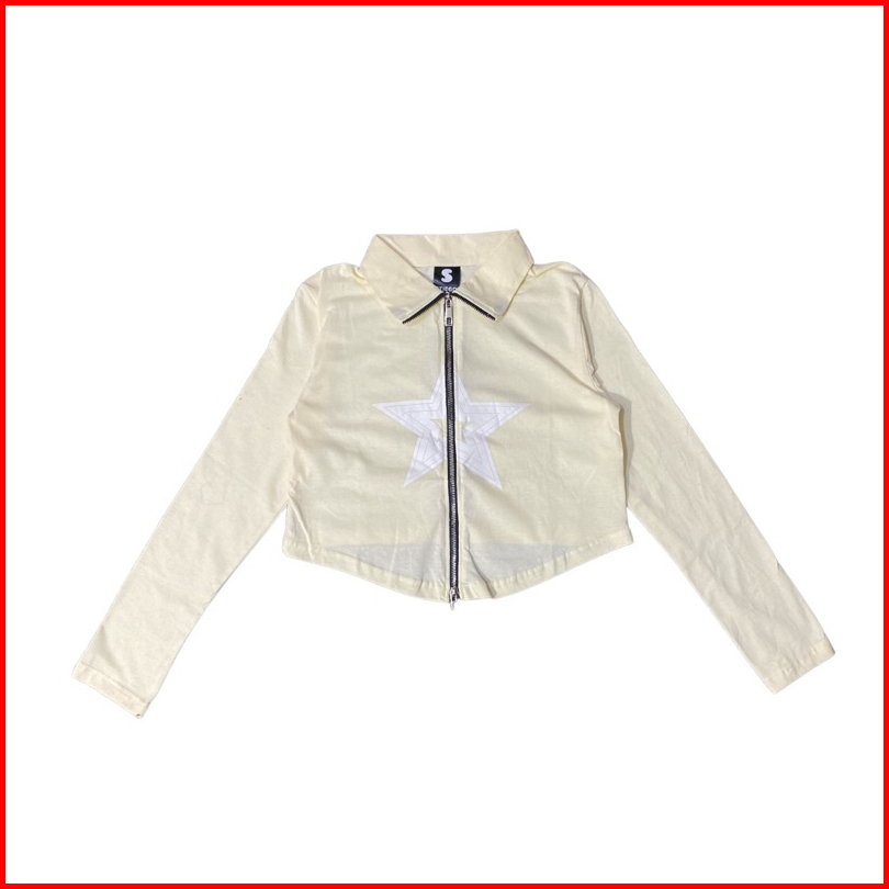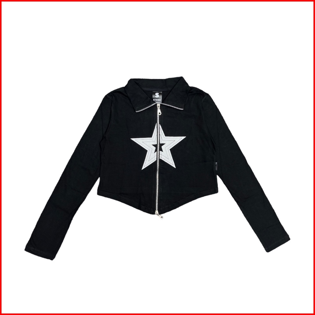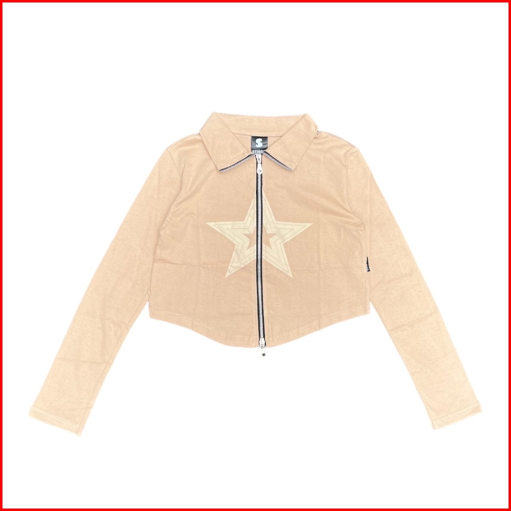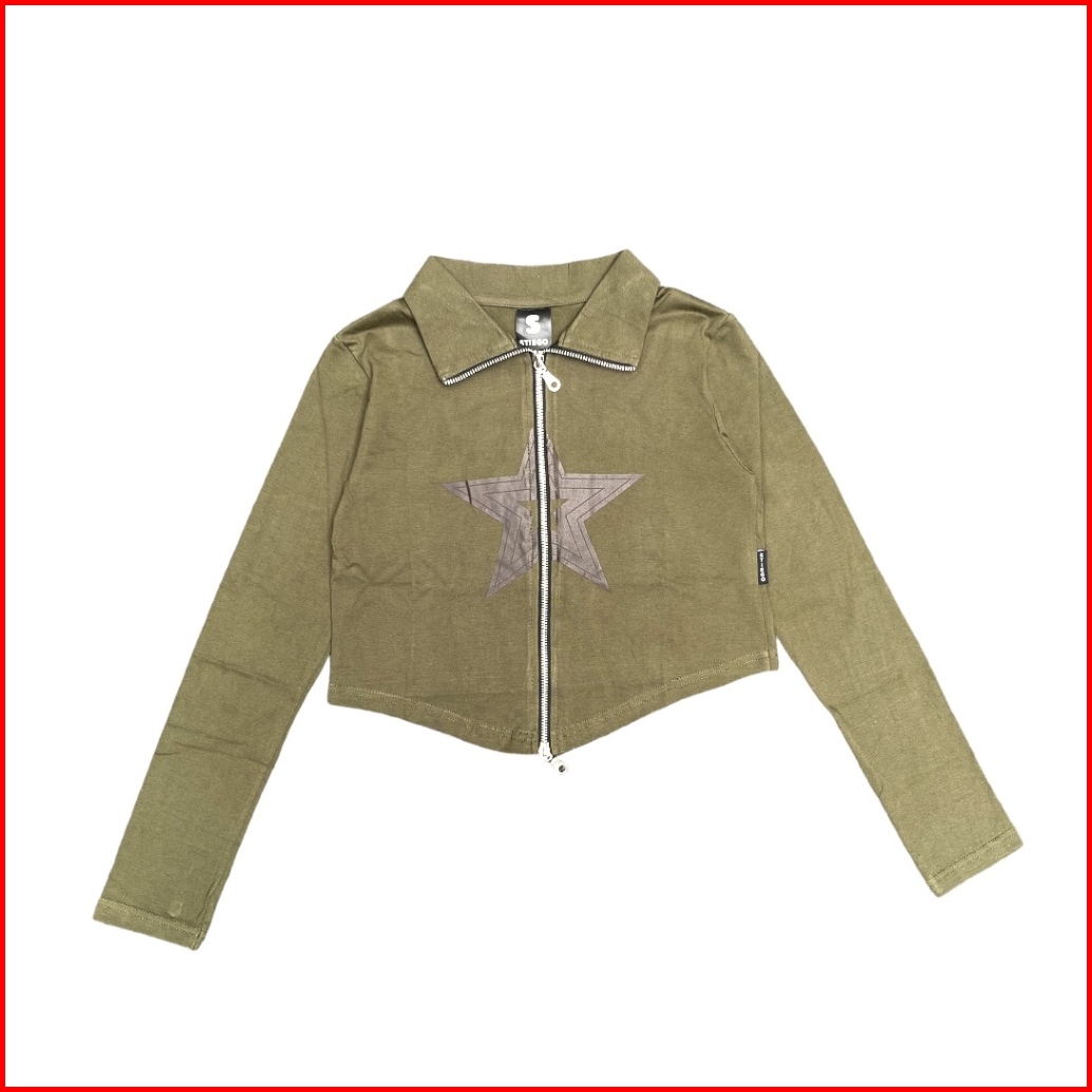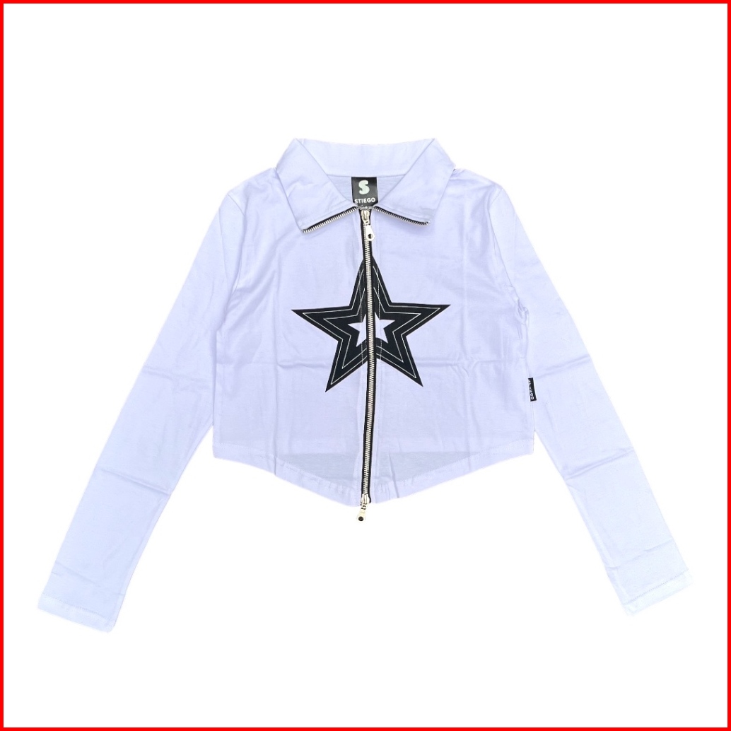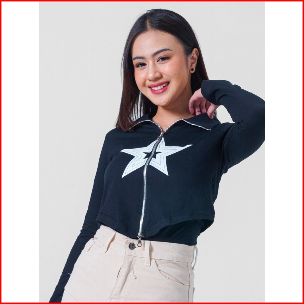 Stiego -star Ziper Crop Longsleeve Zip Top Jaket Wanita Resleting Lengan Panjang