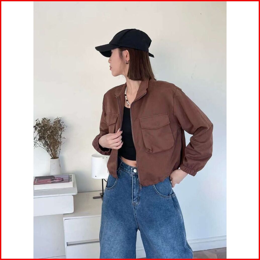 231030 Jacket Premium Jacket Parasut Polos Parachute Jacket Wanita Atasan Kekinian Cropped Jacket