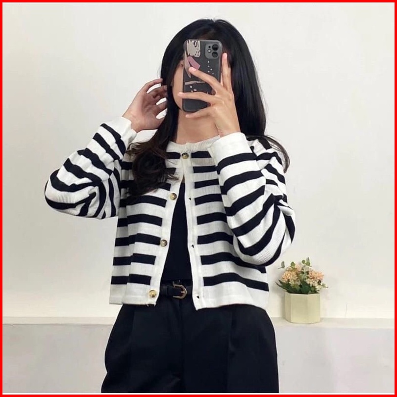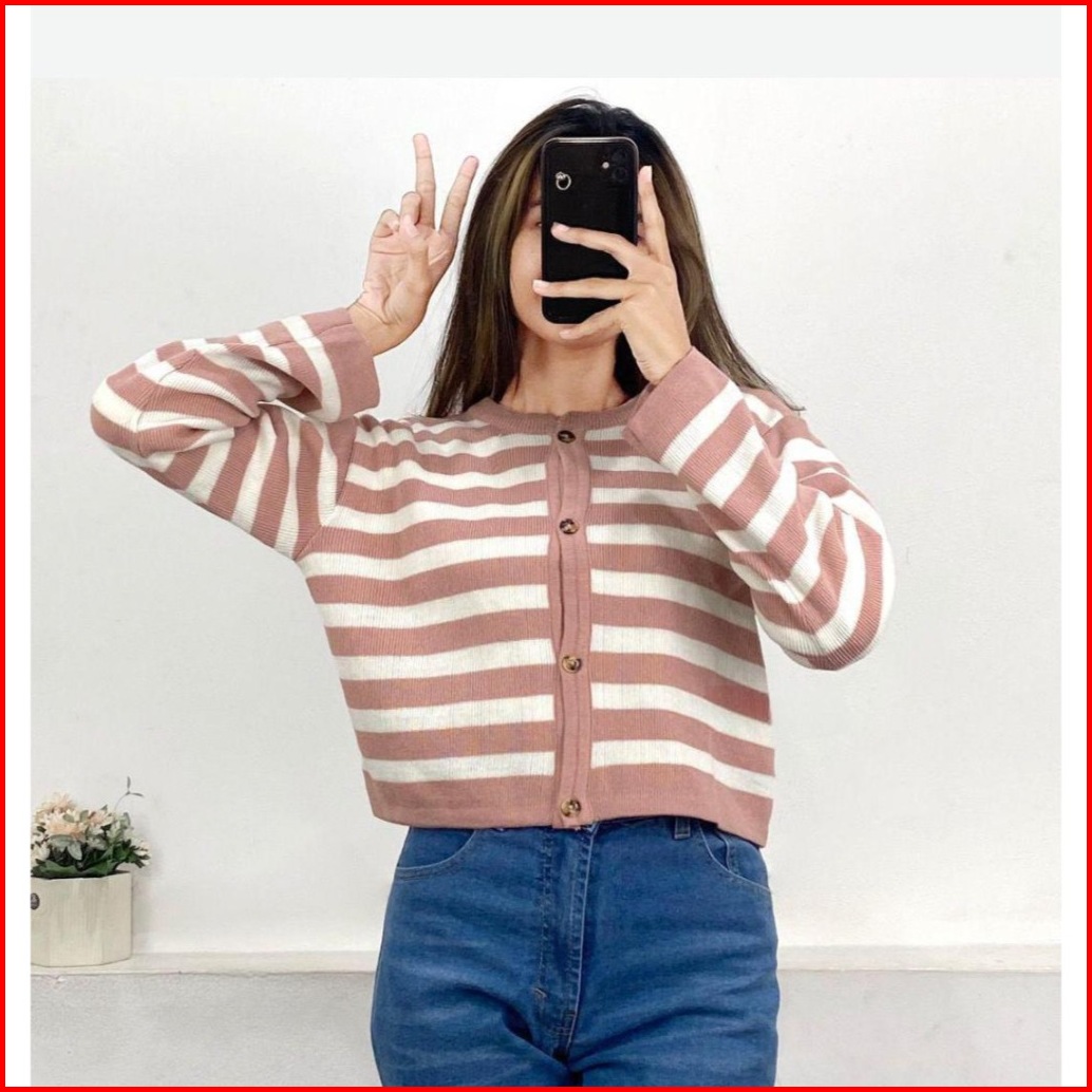 Toply Shop Cardigan Sahara Stripe Korean Style Long Sleeve Stripe Button