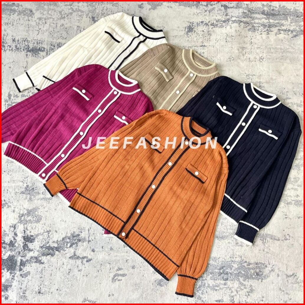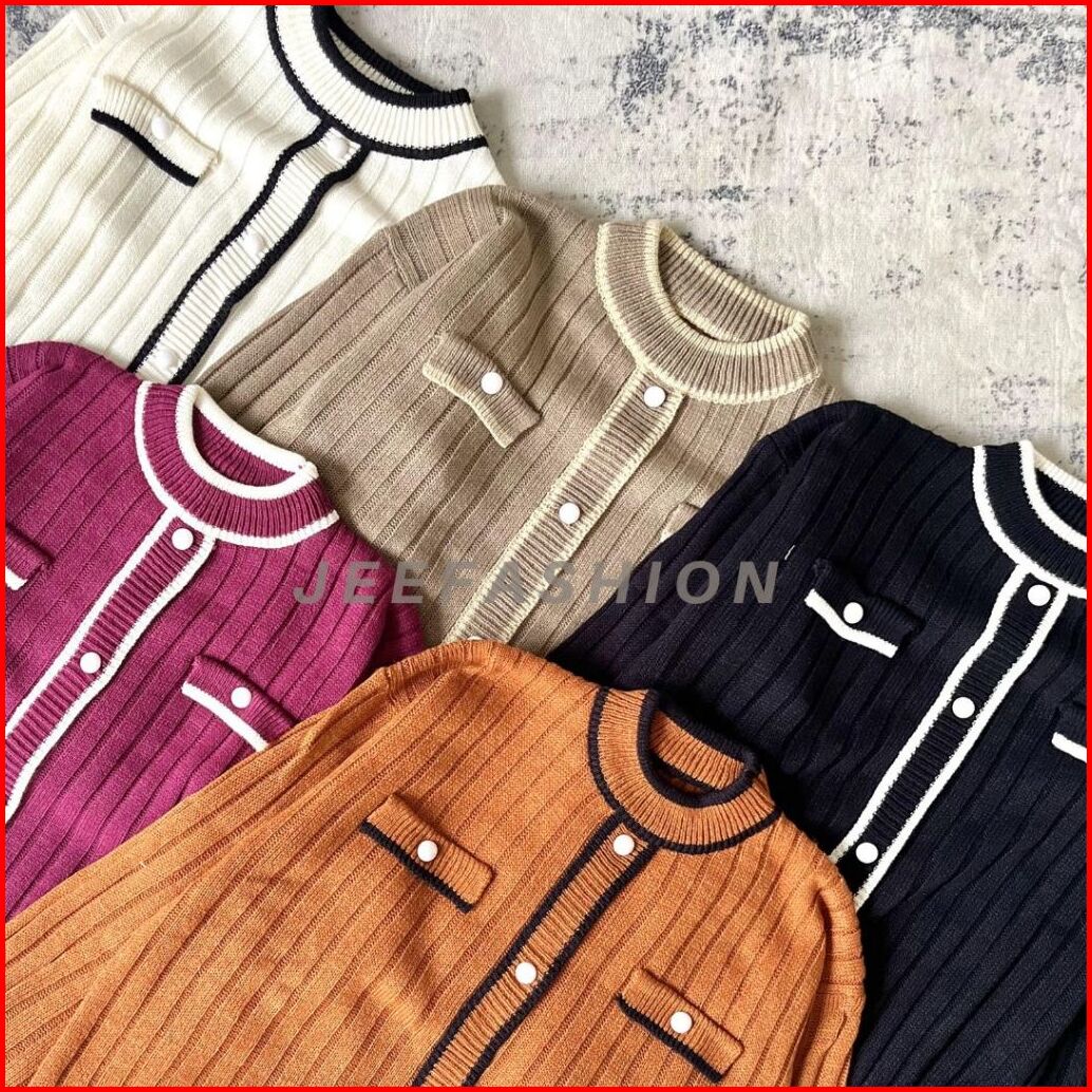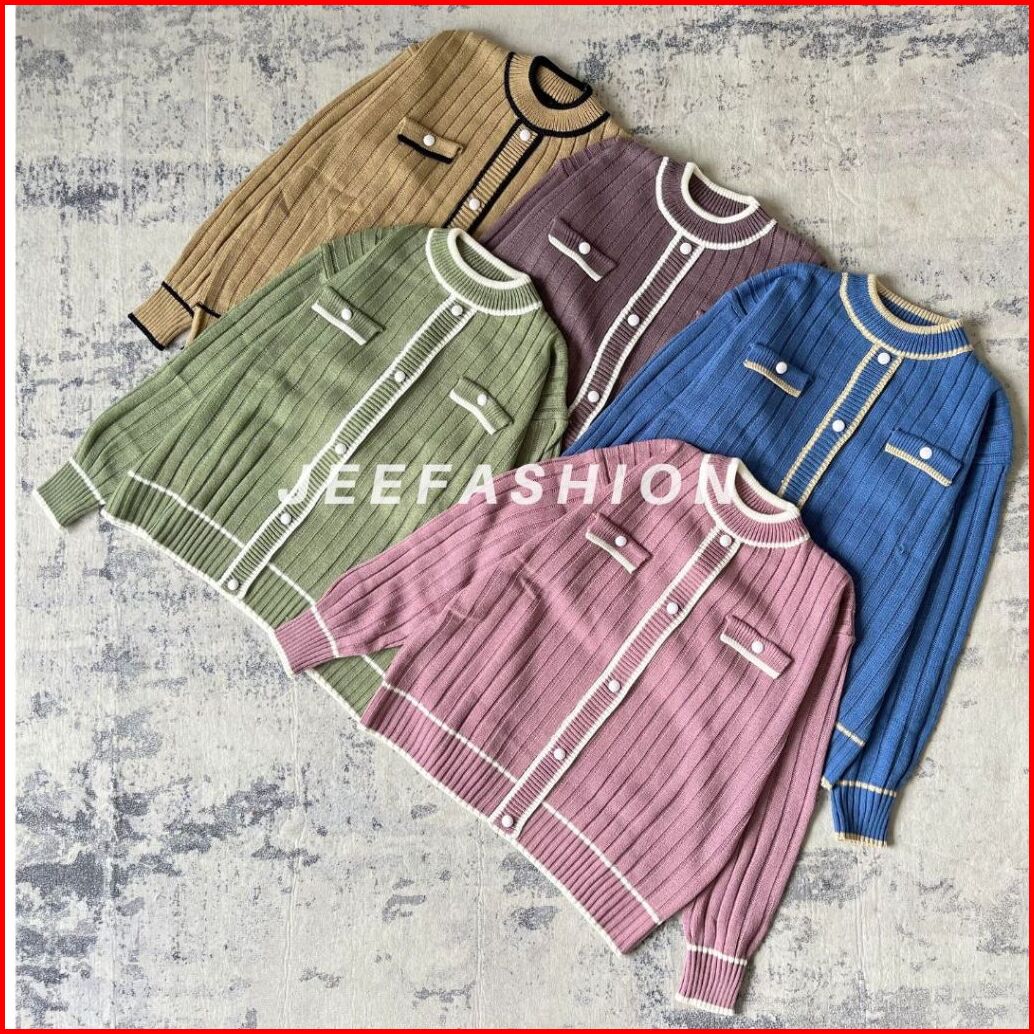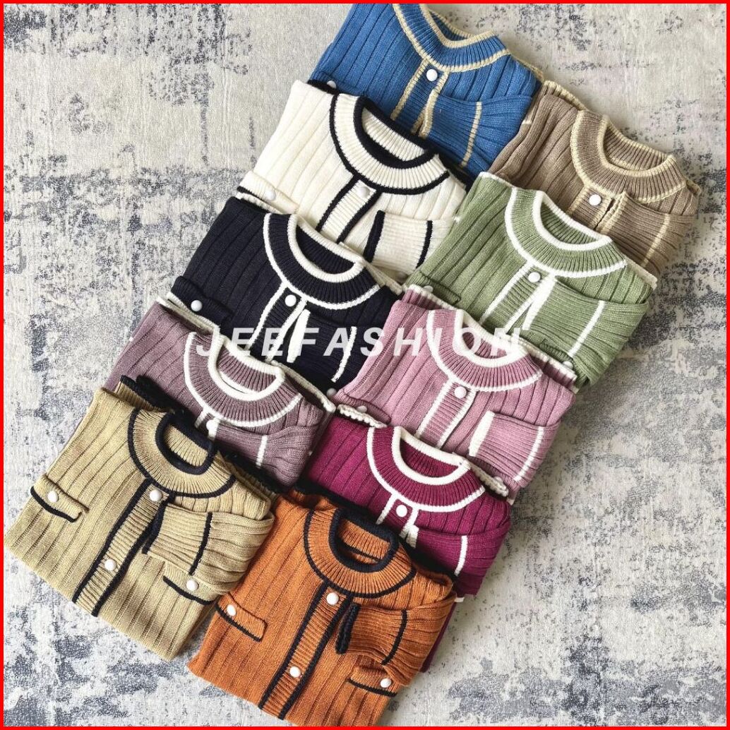 Sweater Rajut Motif Salur Kancing Lili Mutiara Baju Atasan Wanita Lengan Panjang Tebal Premium