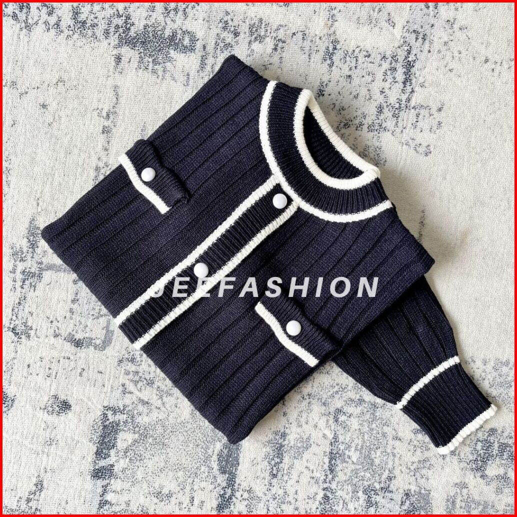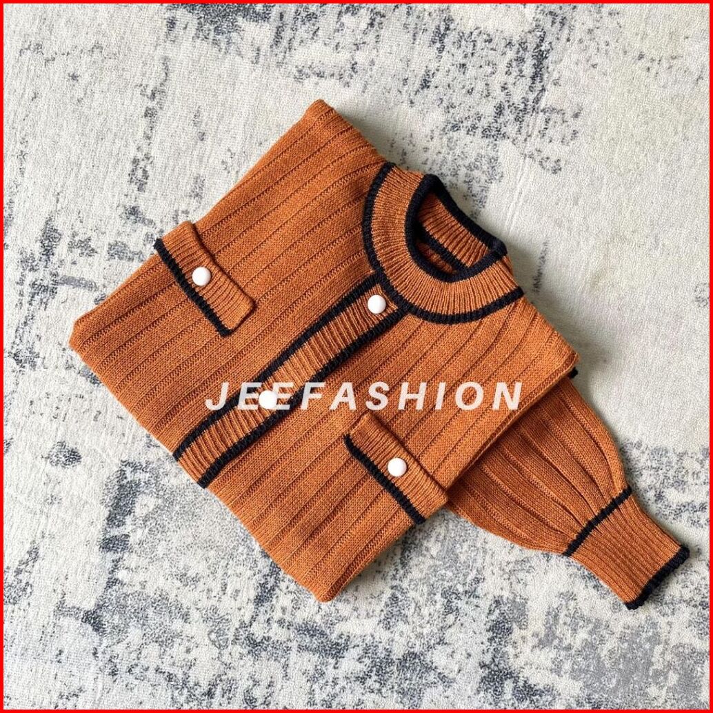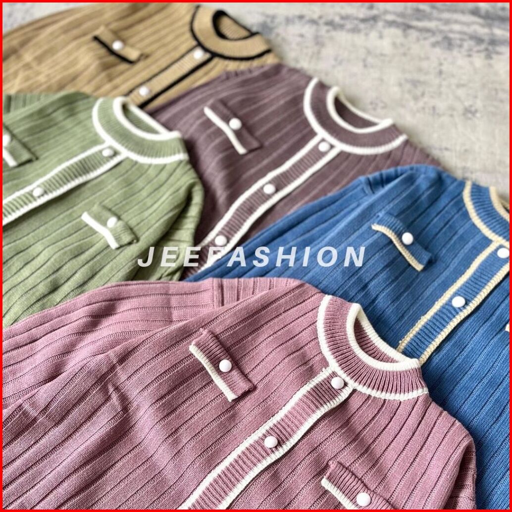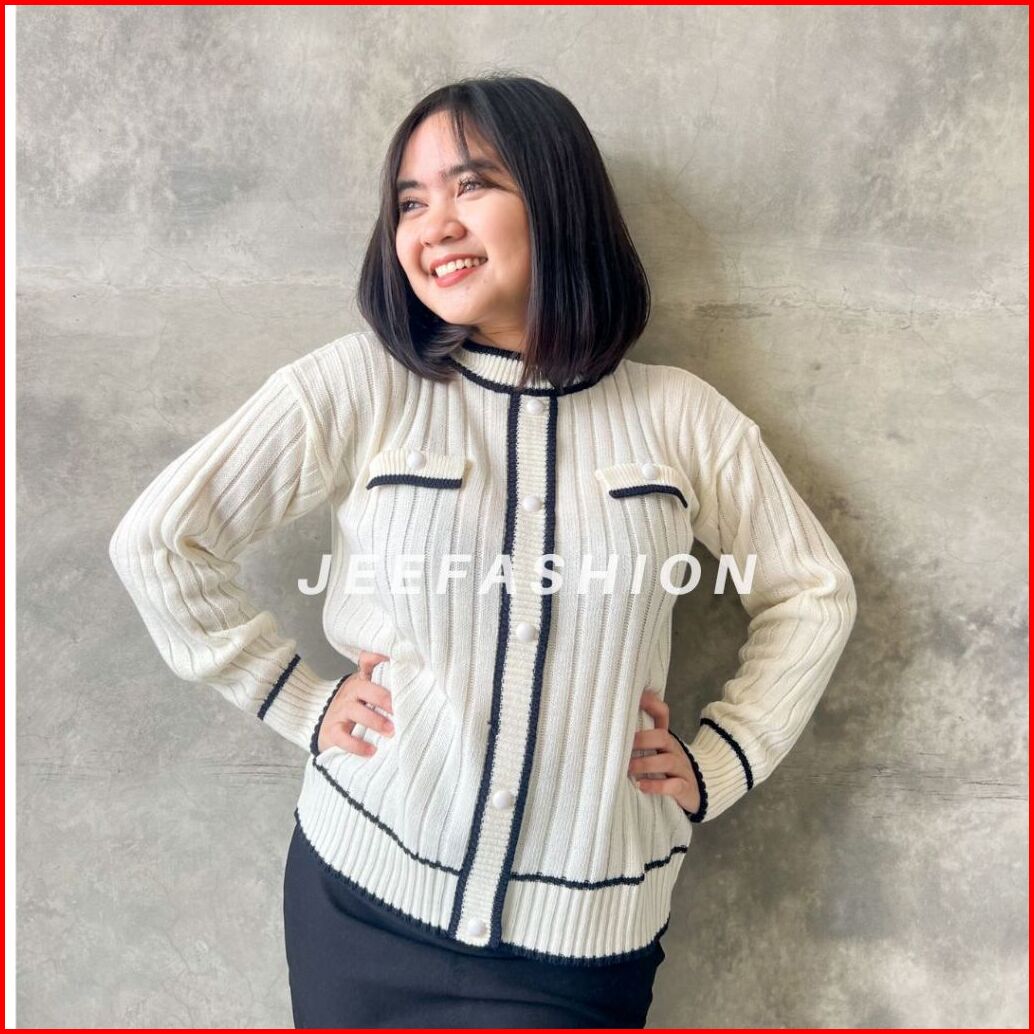 Sweater Rajut Motif Salur Kancing Lili Mutiara Baju Atasan Wanita Lengan Panjang Tebal Premium