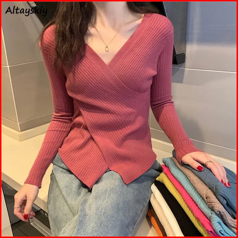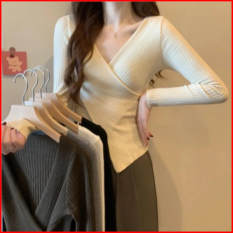 Dicqstore Eliza Knit Sweater Wanita V-neck Gaya Korea All-match Pakaian Wanita Knit