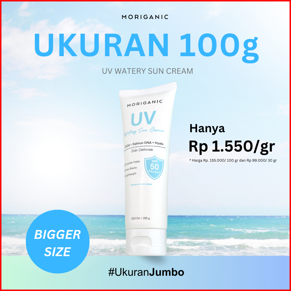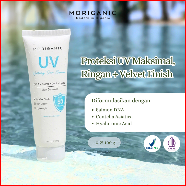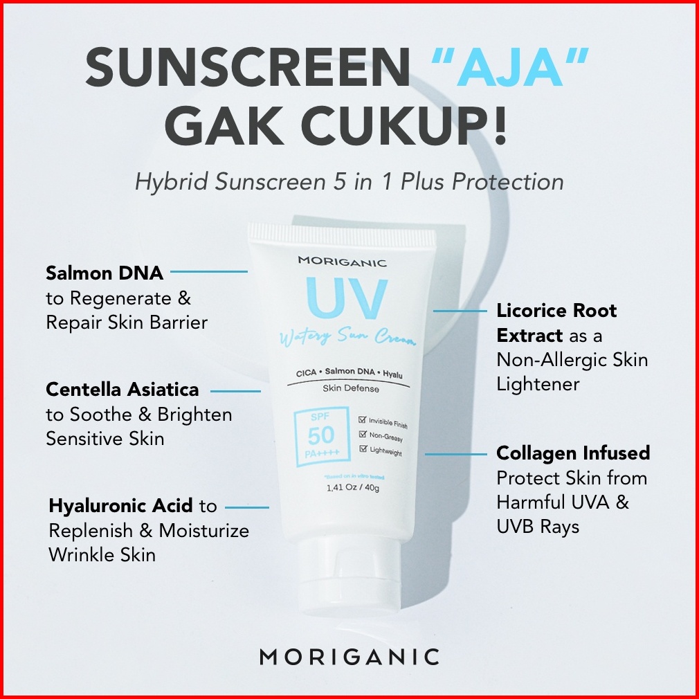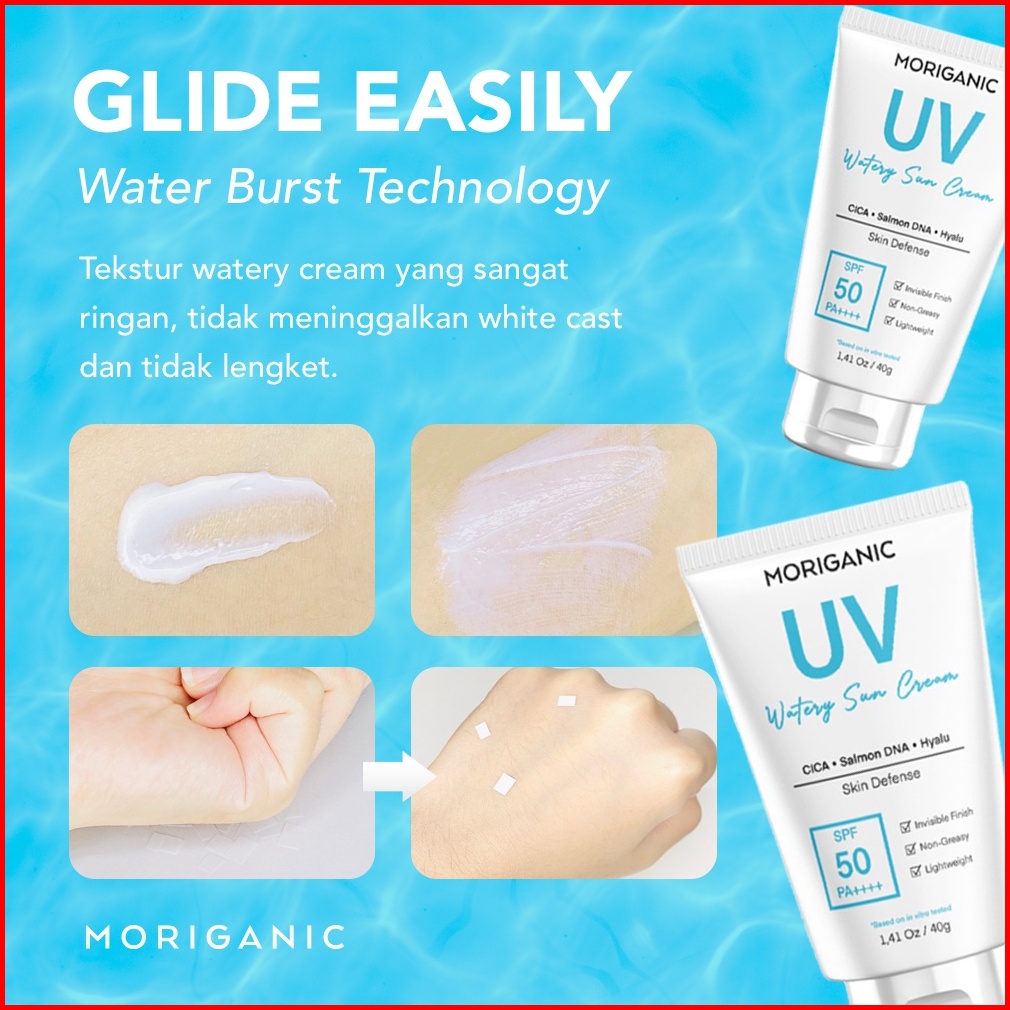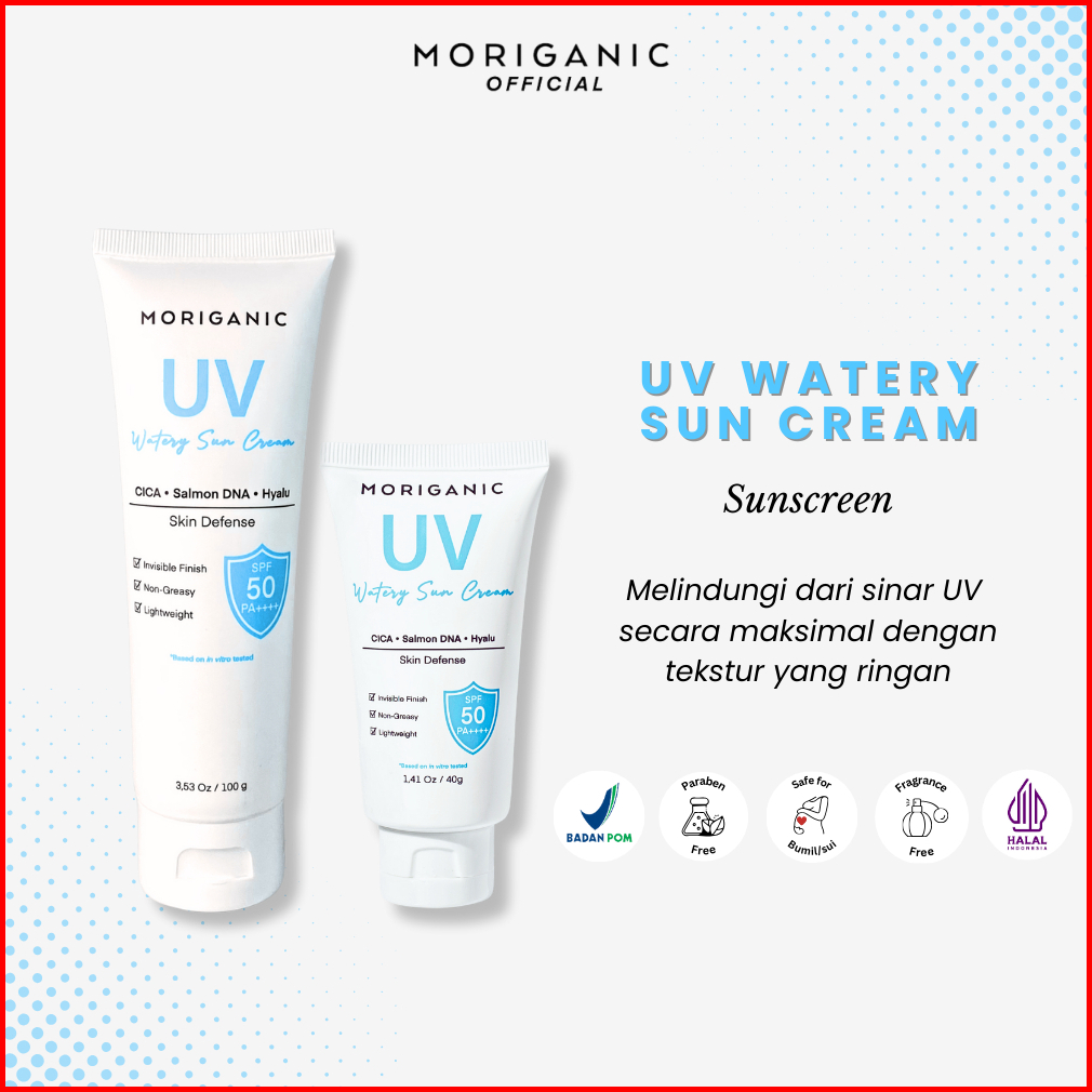 Moriganic Sunscreen Uv Watery Sun Cream With Cica - Salmon Dna - Hyaluronic Spf50 Pa - Sunscreen Jerawat - Sunscreen Hyb